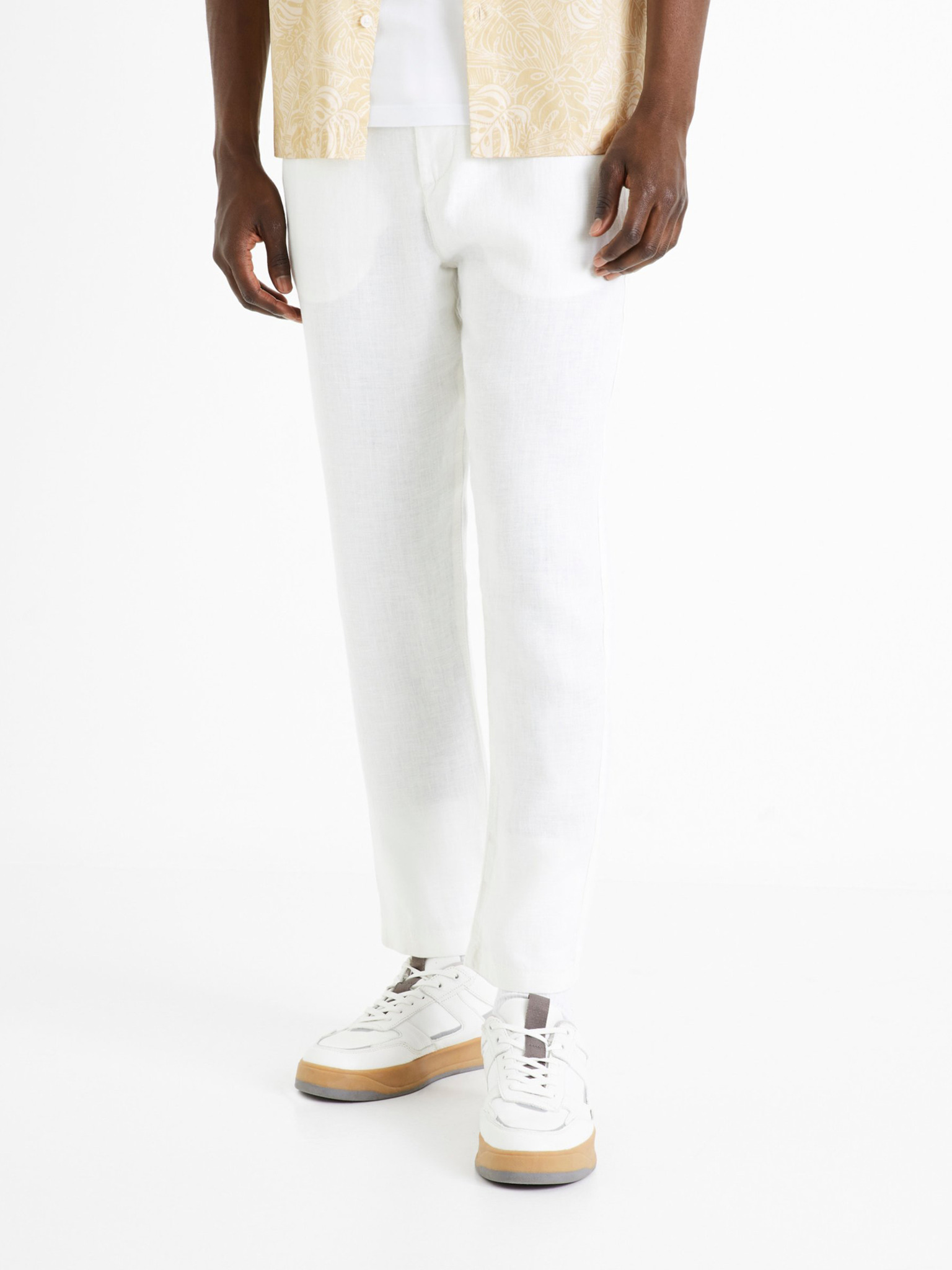 Moške bež hlače iz mešanice lanu Celio Dolinco