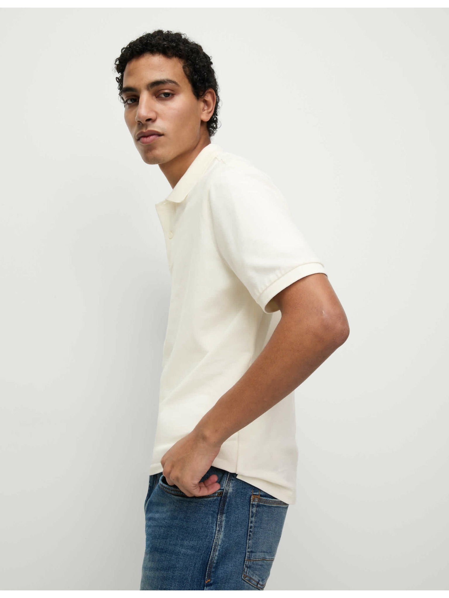 Bombažna polo majica iz piqué pletenine - kremna