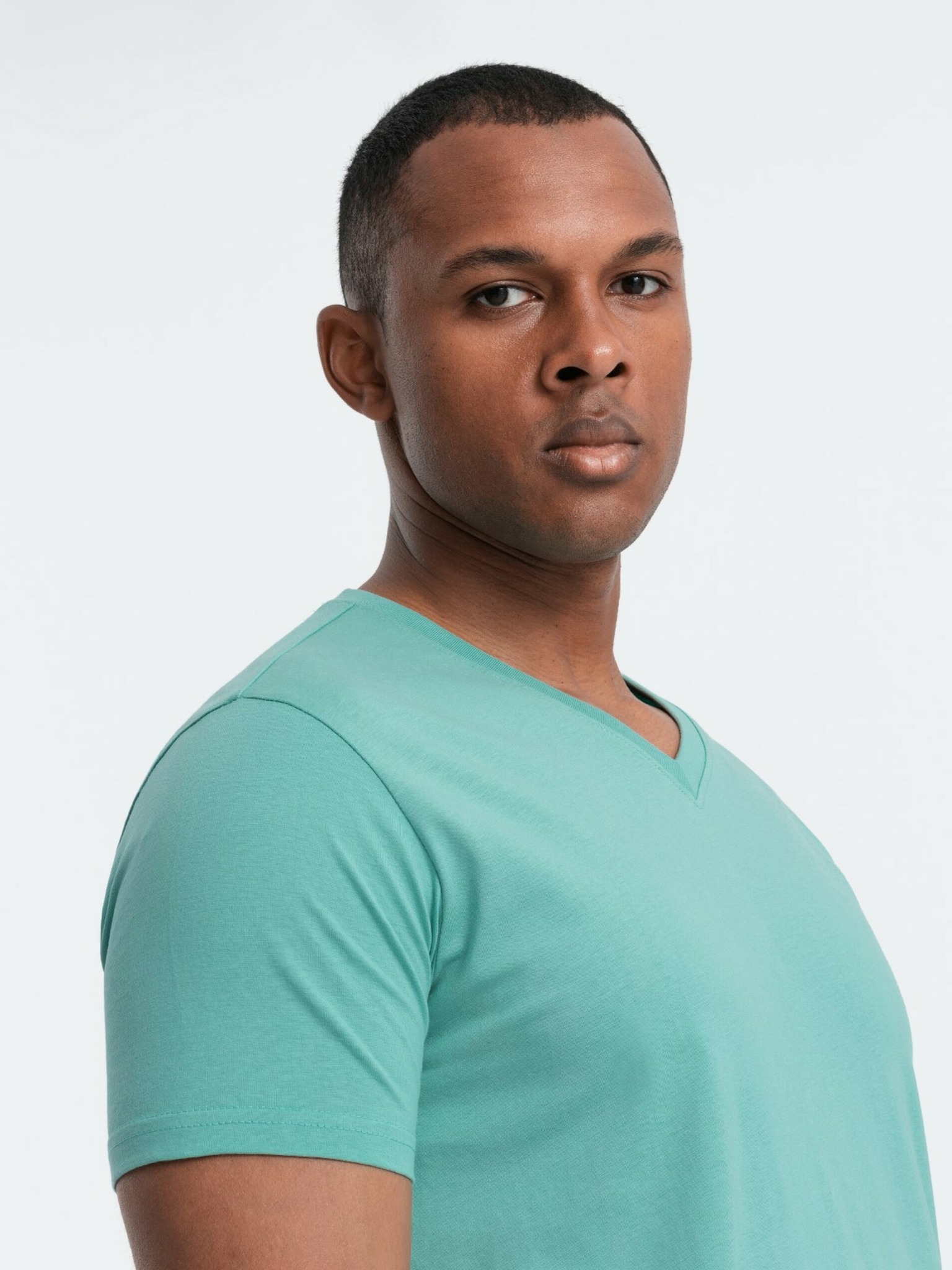 Bombažna klasična moška majica BASIC z V-izrezom - zelena