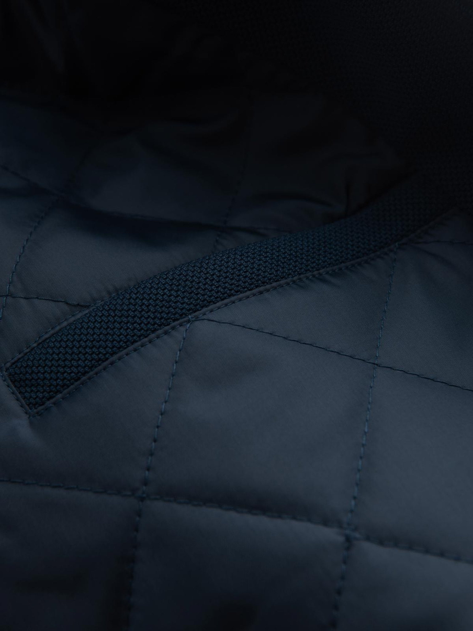 Moška prešivana jakna z leskom in stojačem - temno modra V2 OM-JALP-0218 Ombre Clothing
