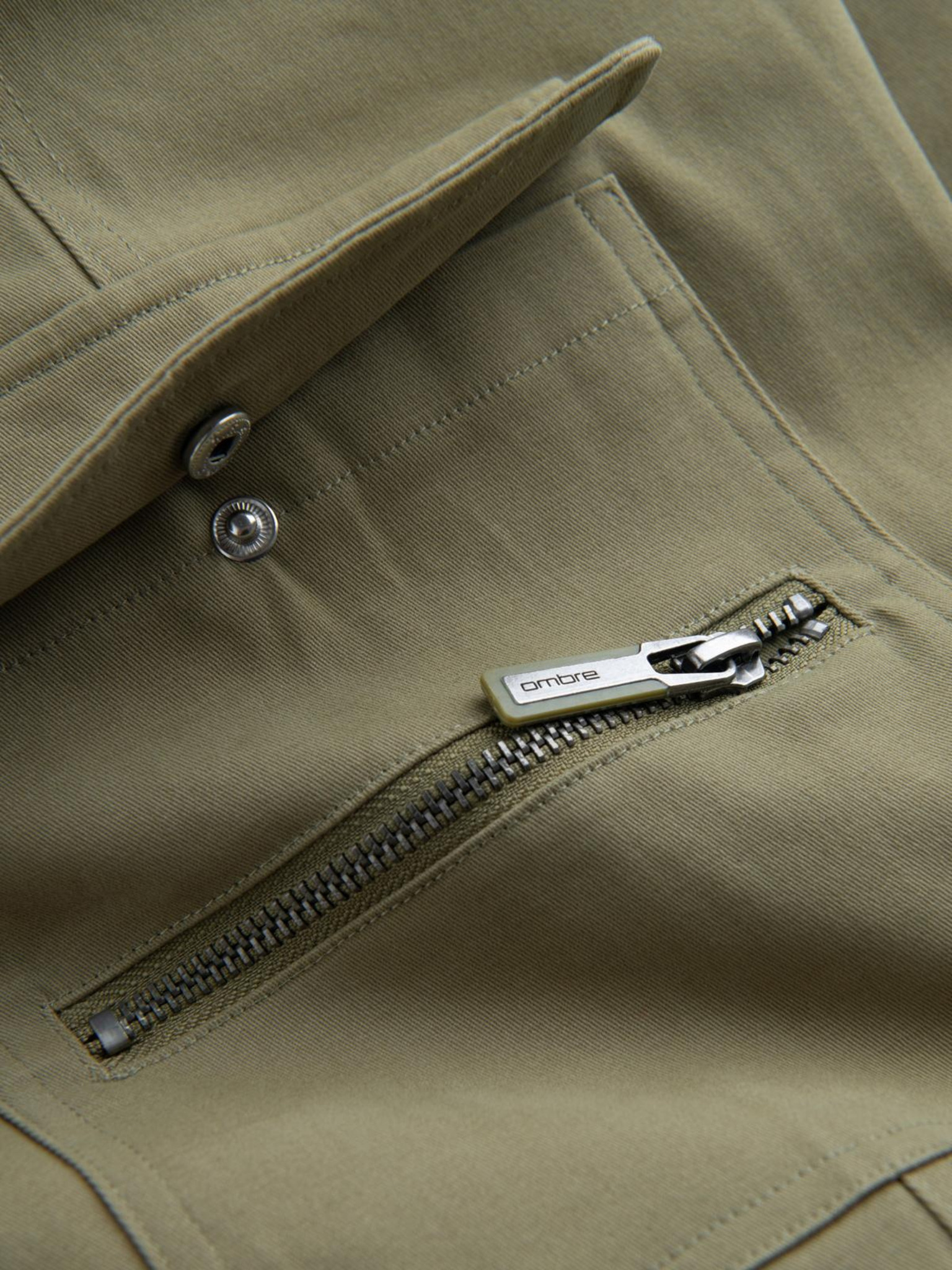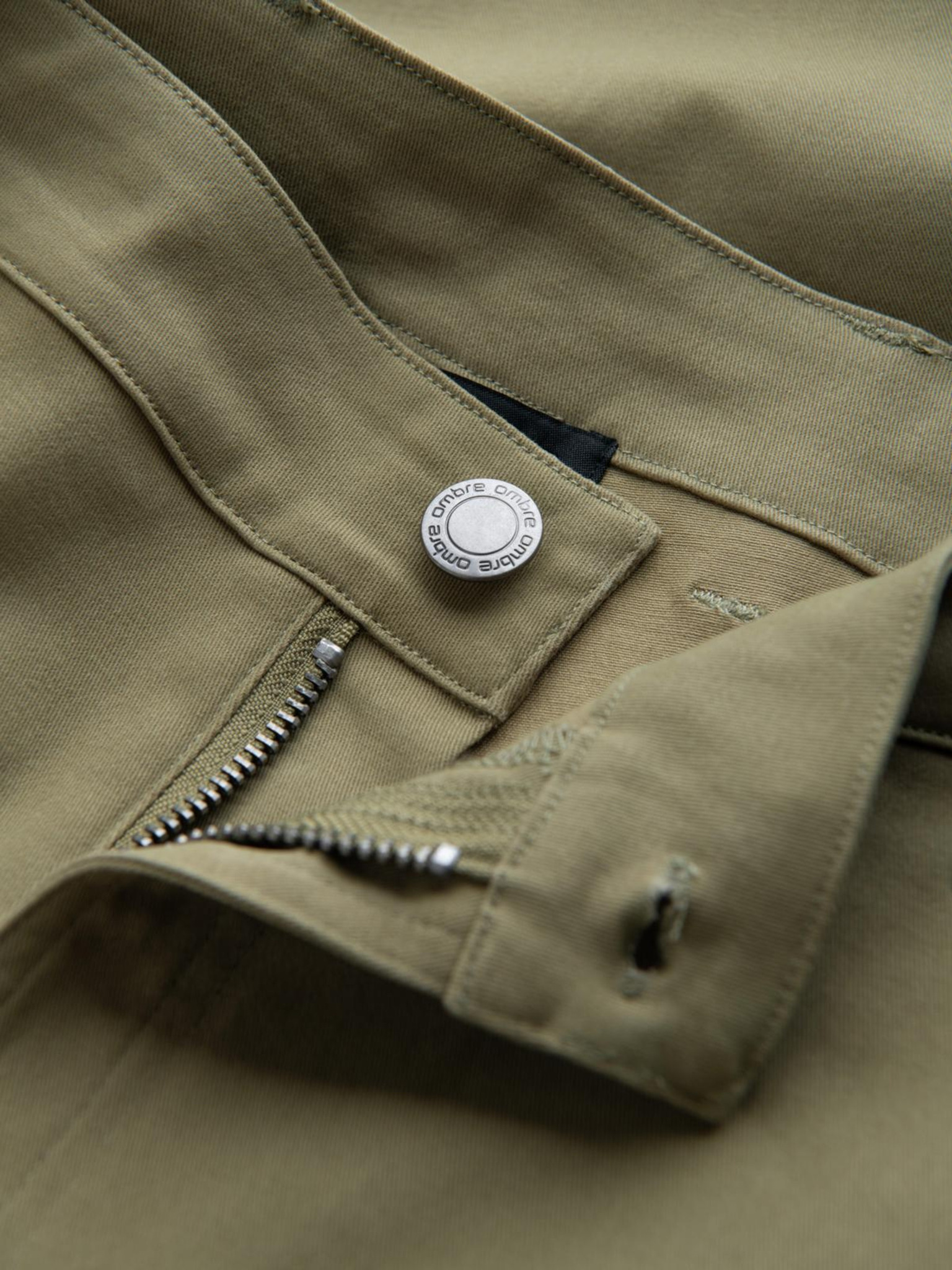 Moške jogger hlače z žepi in potiskom temno olivno zelene barve Ombre oblačila