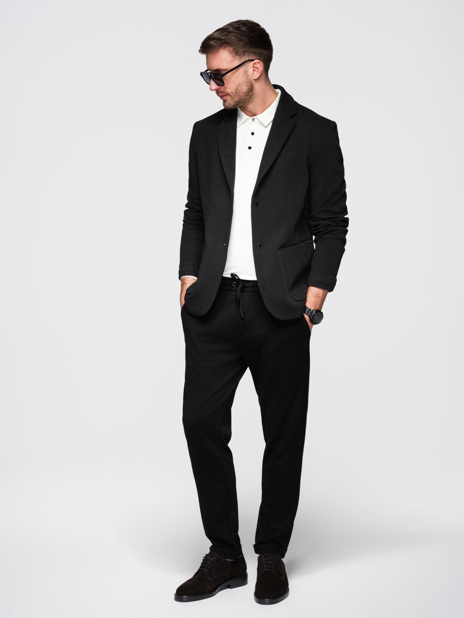 Moška pletena jakna v prilegajočem kroju - črna V5 OM-BLZB-0100 Ombre Clothing