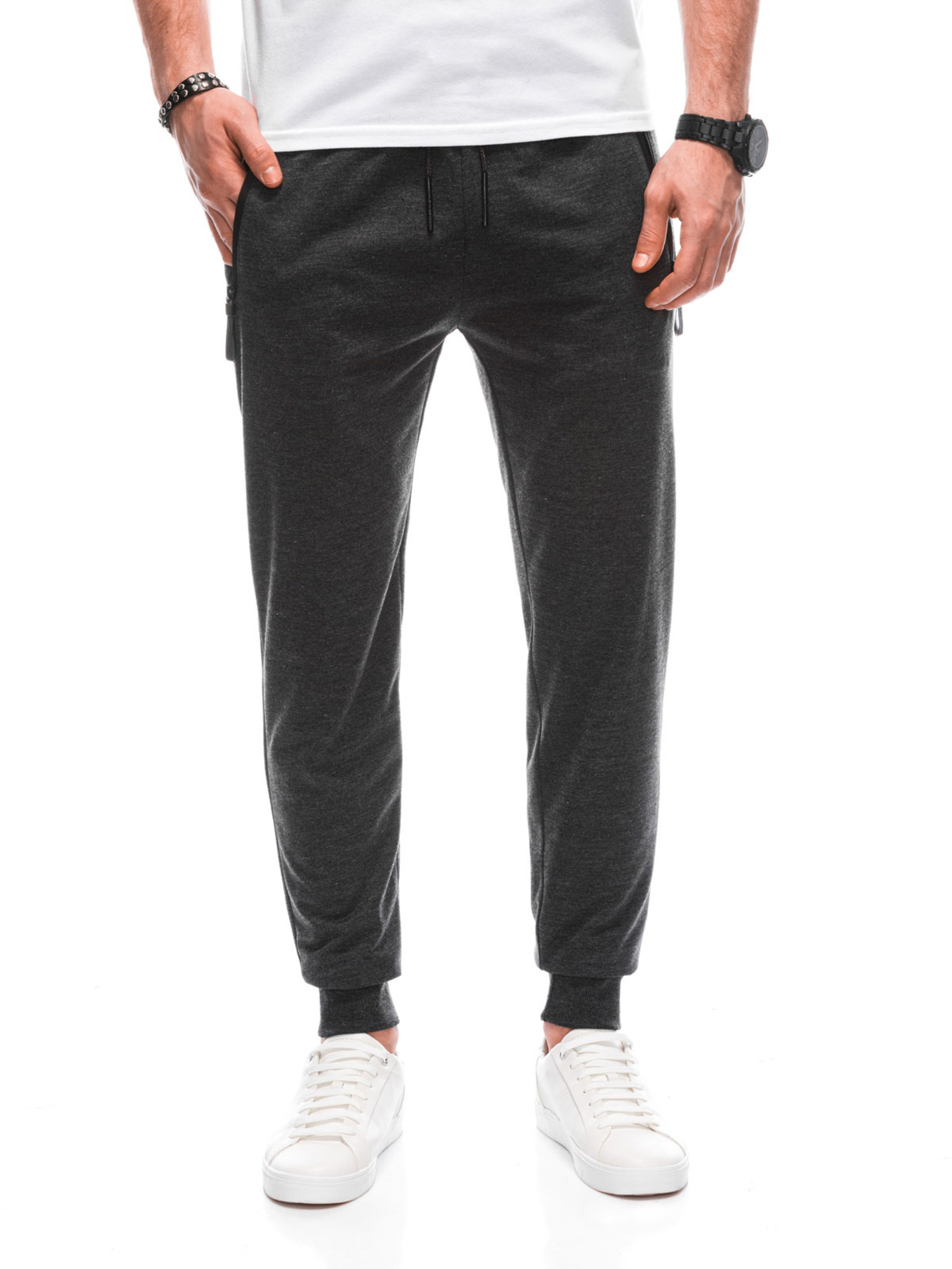 Moške pletene trenirke z gubami grafitna Ombre oblačila
