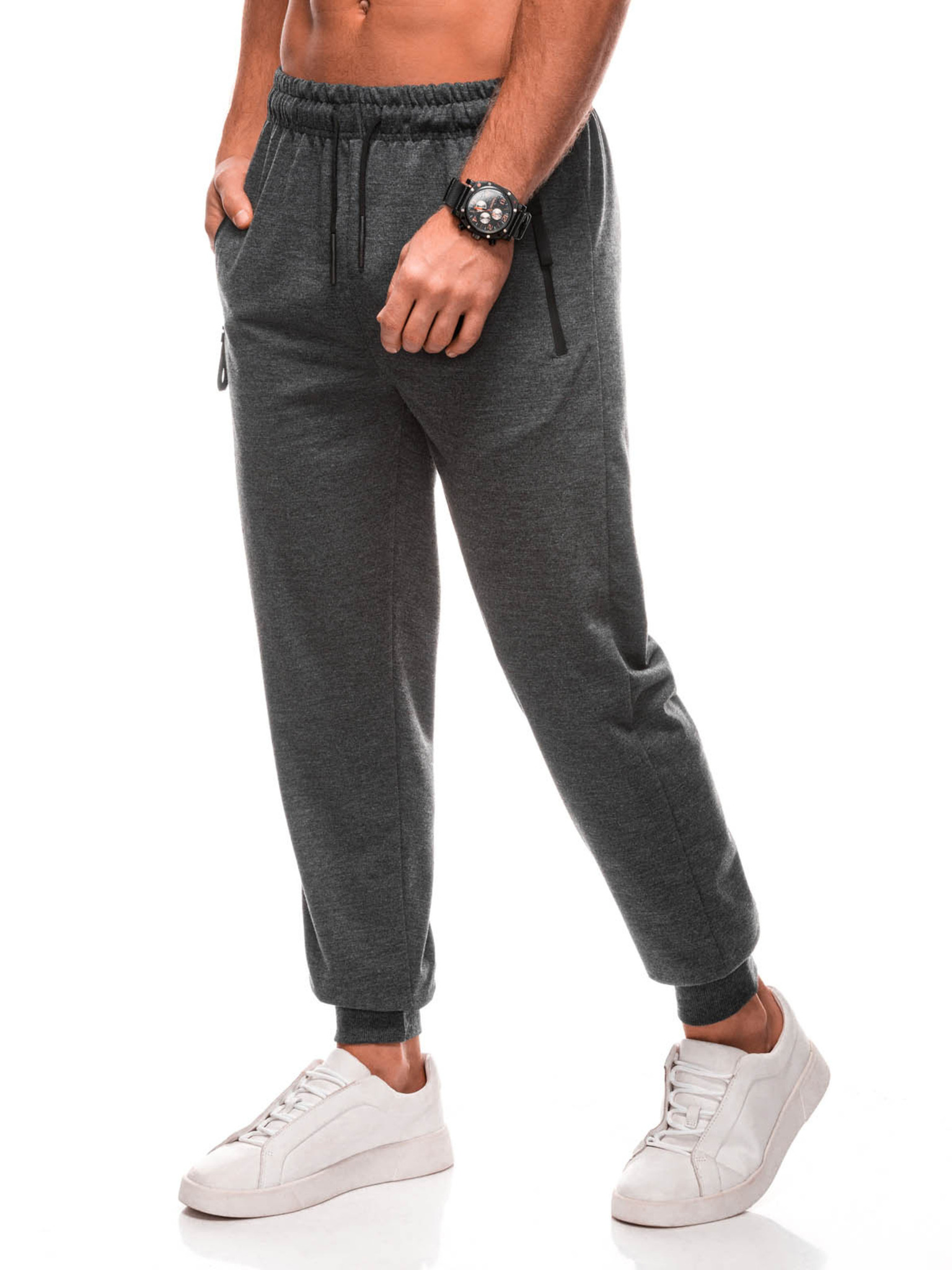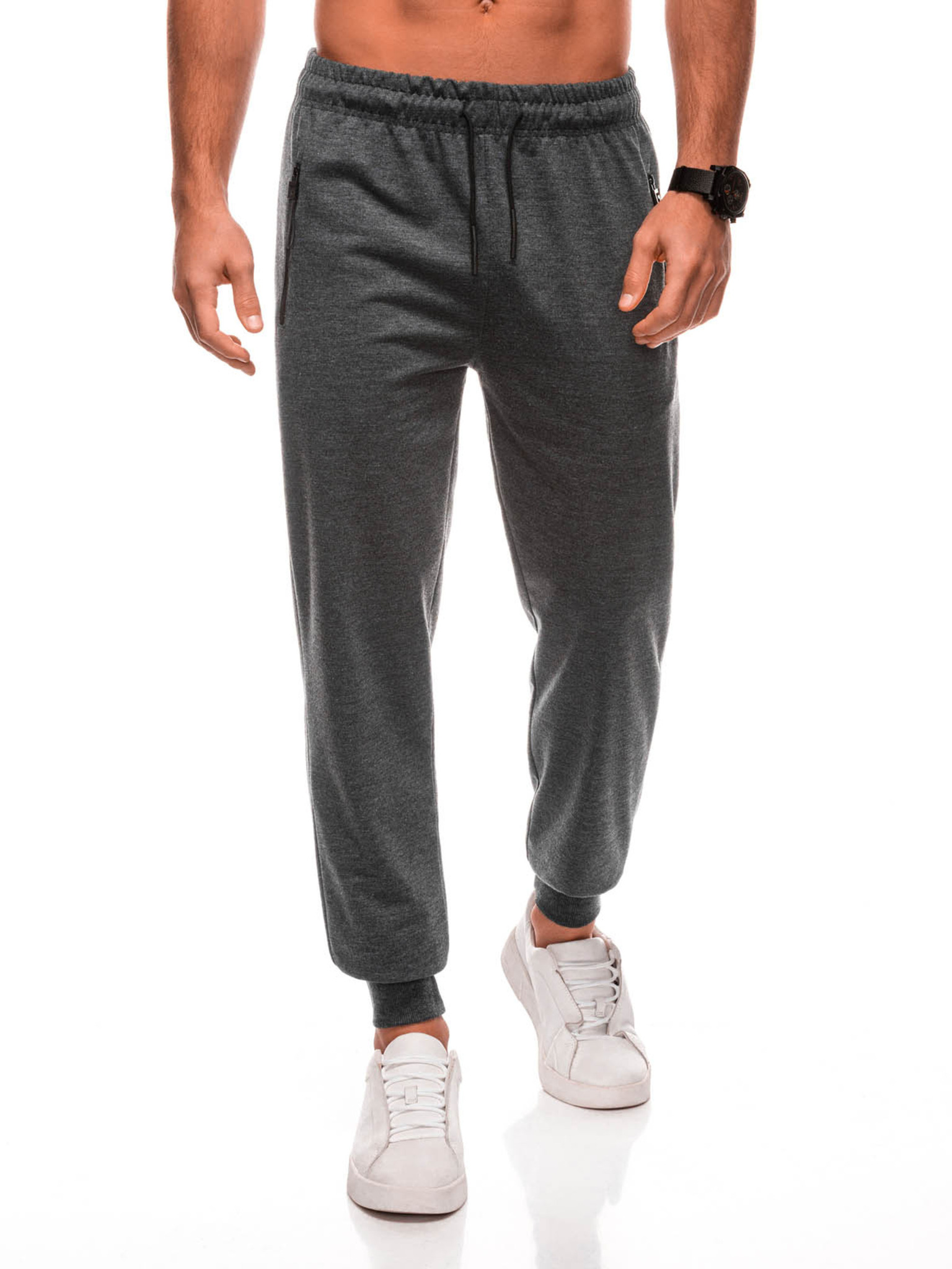 Moške pletene trenirke z gubami grafitna Ombre oblačila