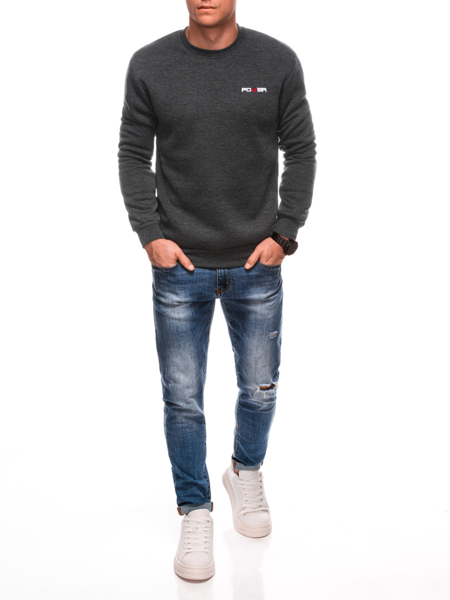 Uniseks klasičen pulover z okroglim izrezom - siva