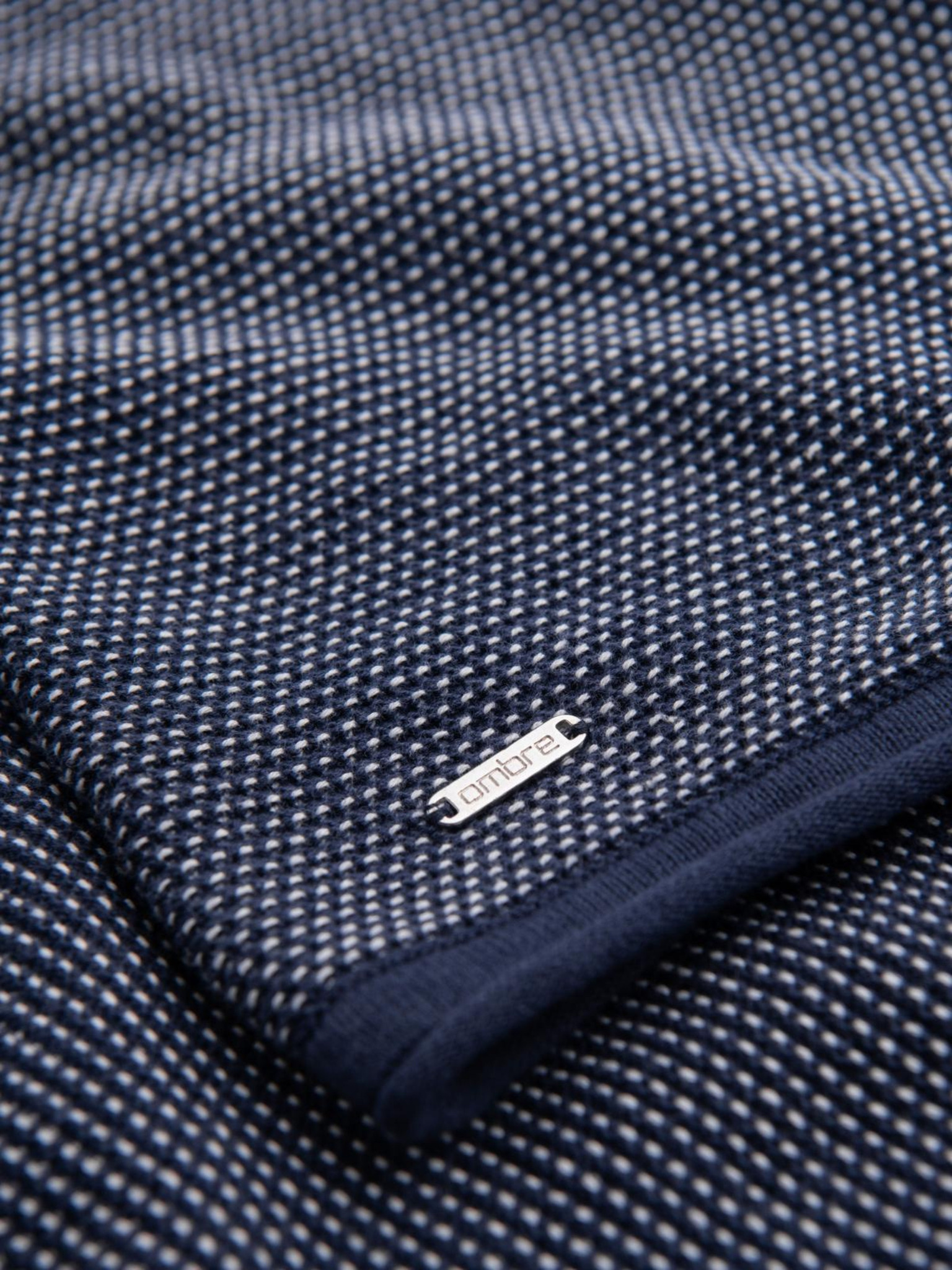 Moški pleteni pulover s strukturiranimi pikami - temno modra barva Ombre Clothing