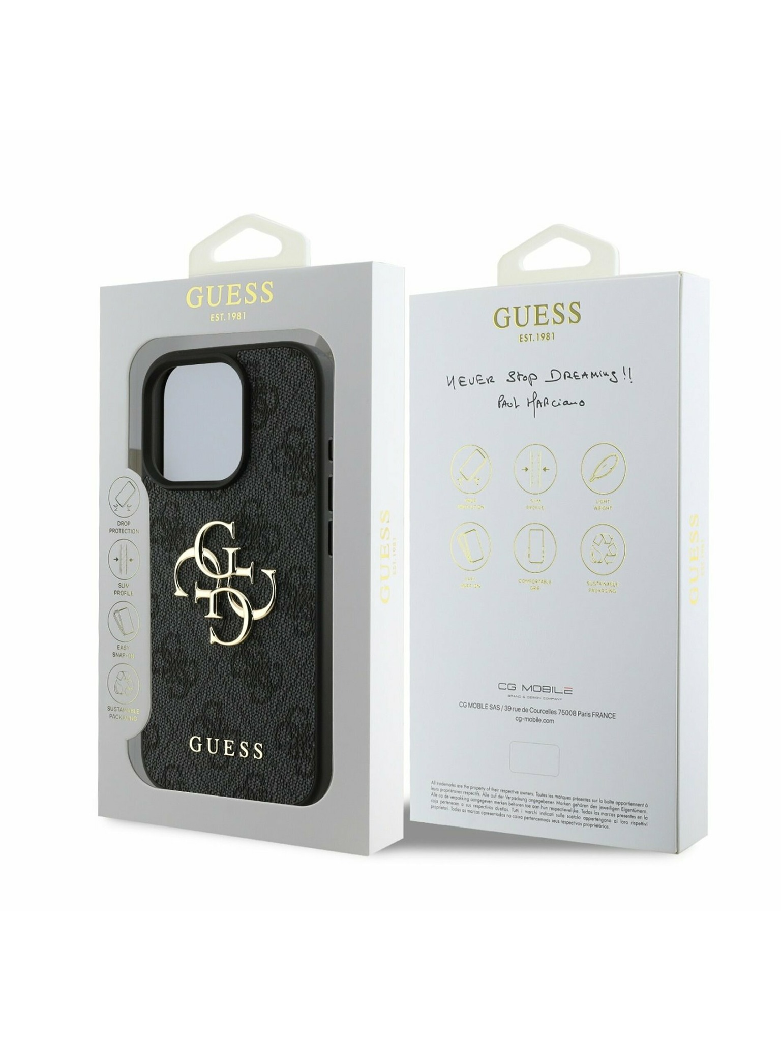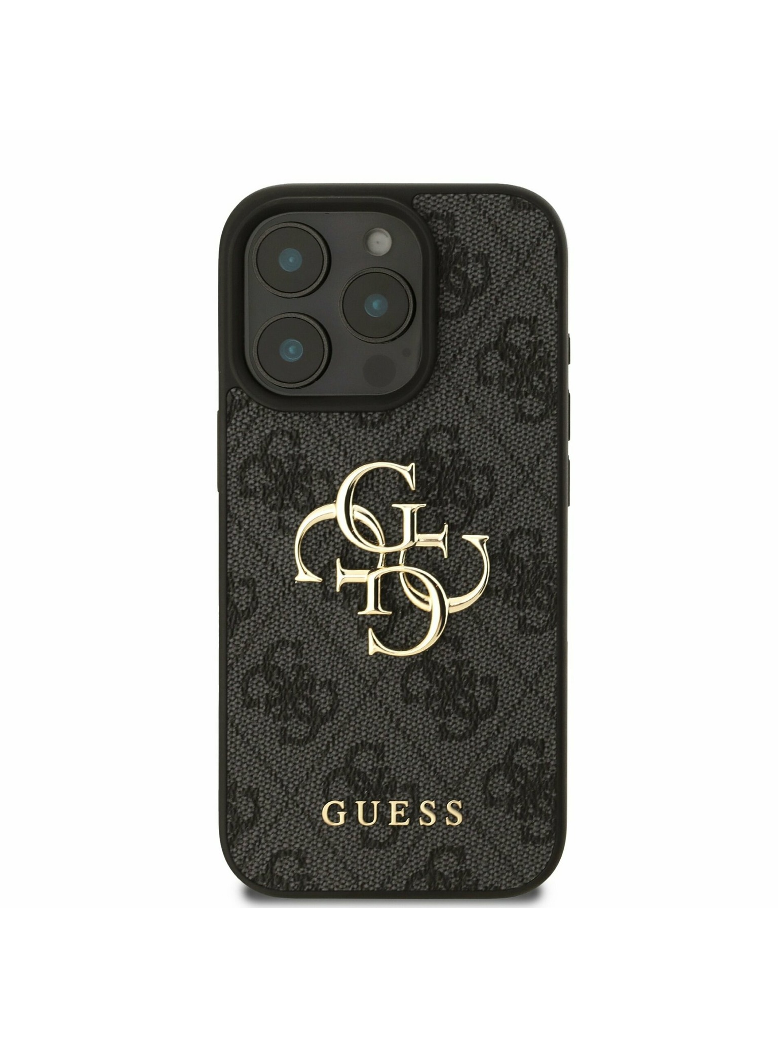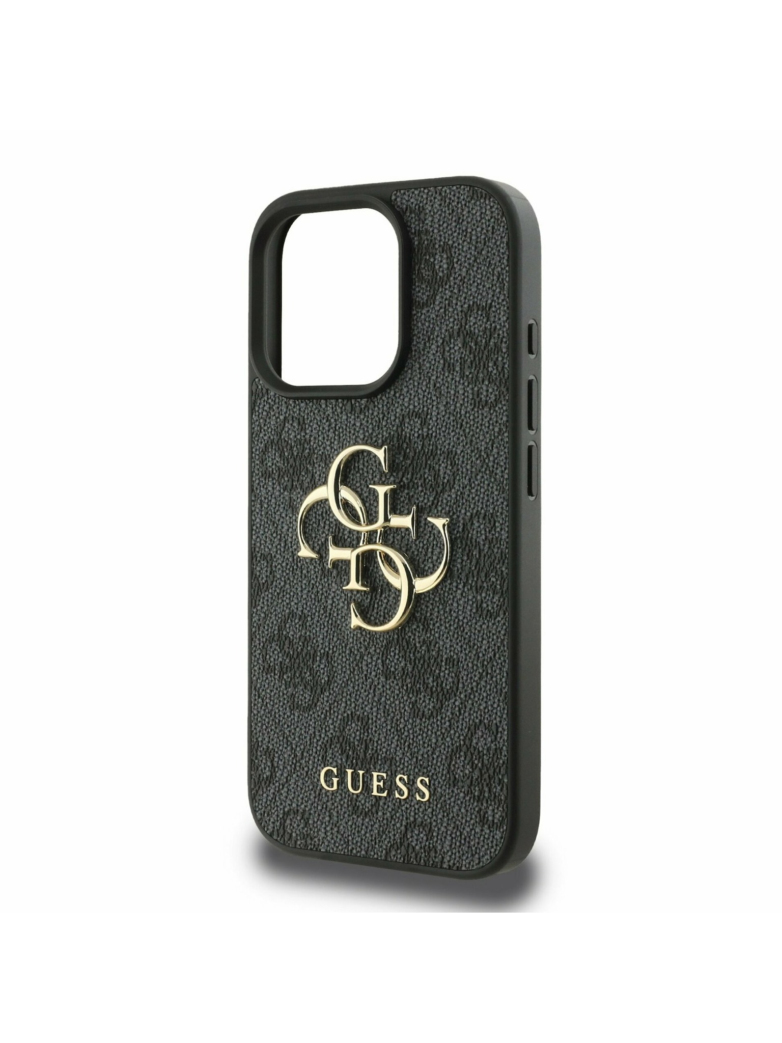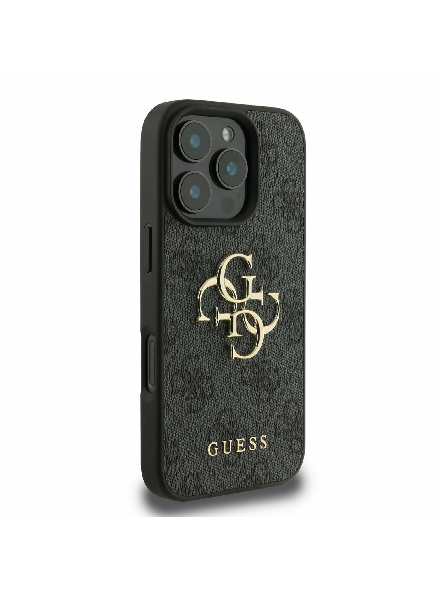Guess PU Grained 4G Kovinski Logo Zadnji ovitek za iPhone 16e Črn