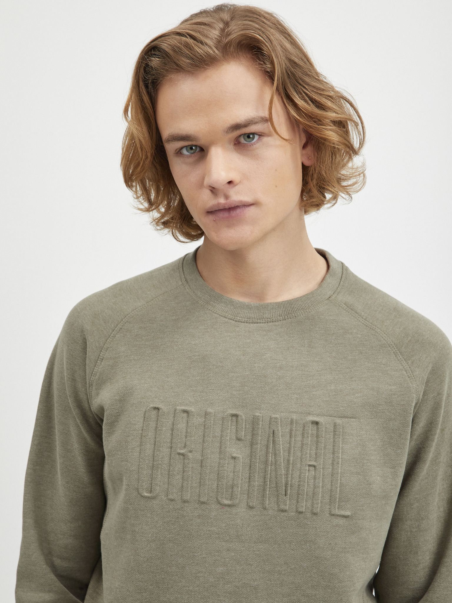 Moška jopica z visokim ovratnikom in črtami - olivna