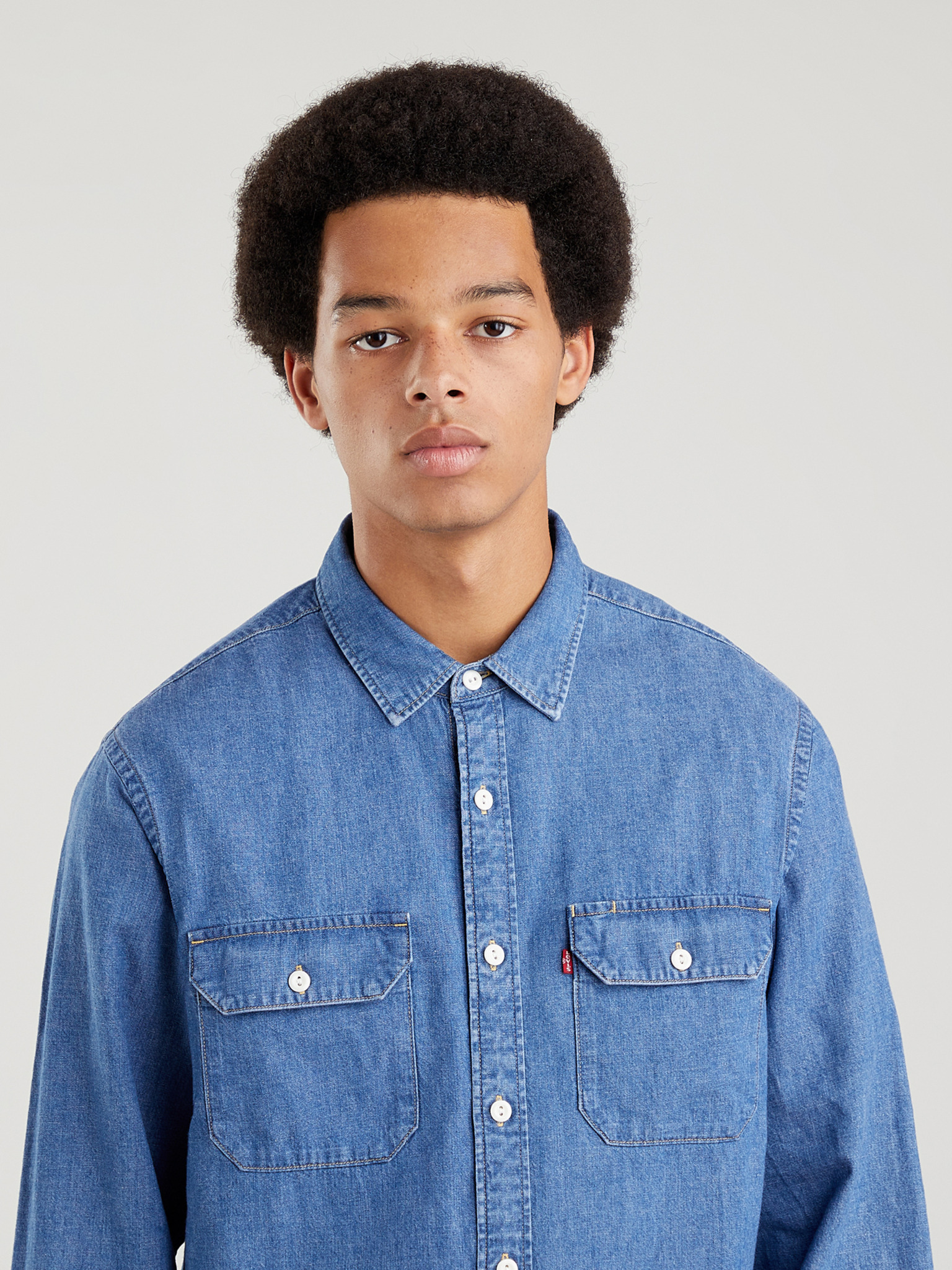 Moška majica iz džinsa z izvezenim žepom - svetlo modra Ombre Clothing