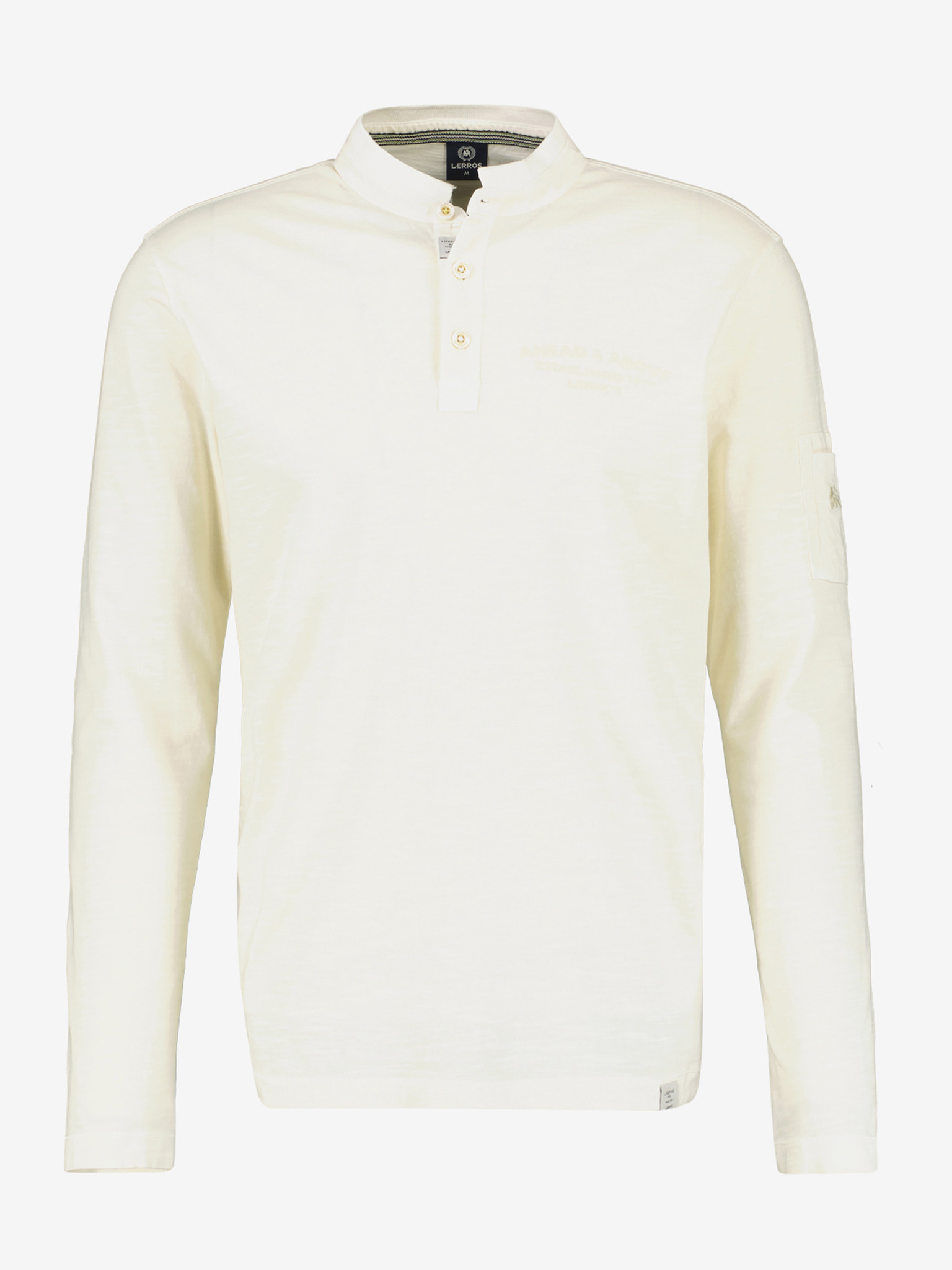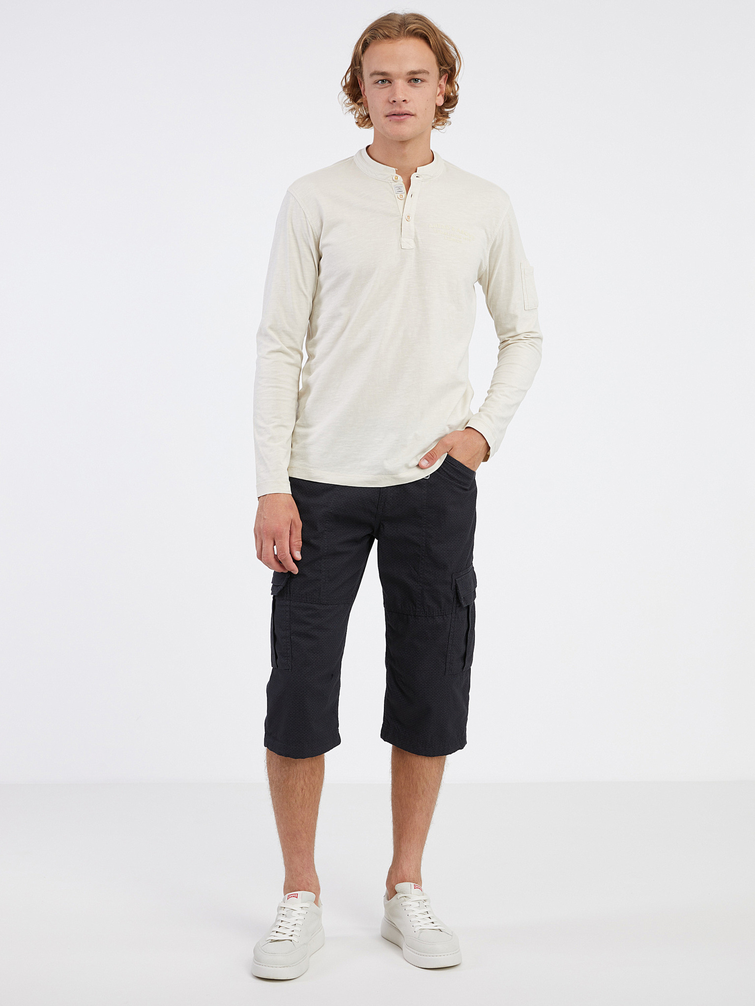 Moška polo majica z dolgimi rokavi in vodoravnimi črtami iz viskoznega materiala - bela in bež