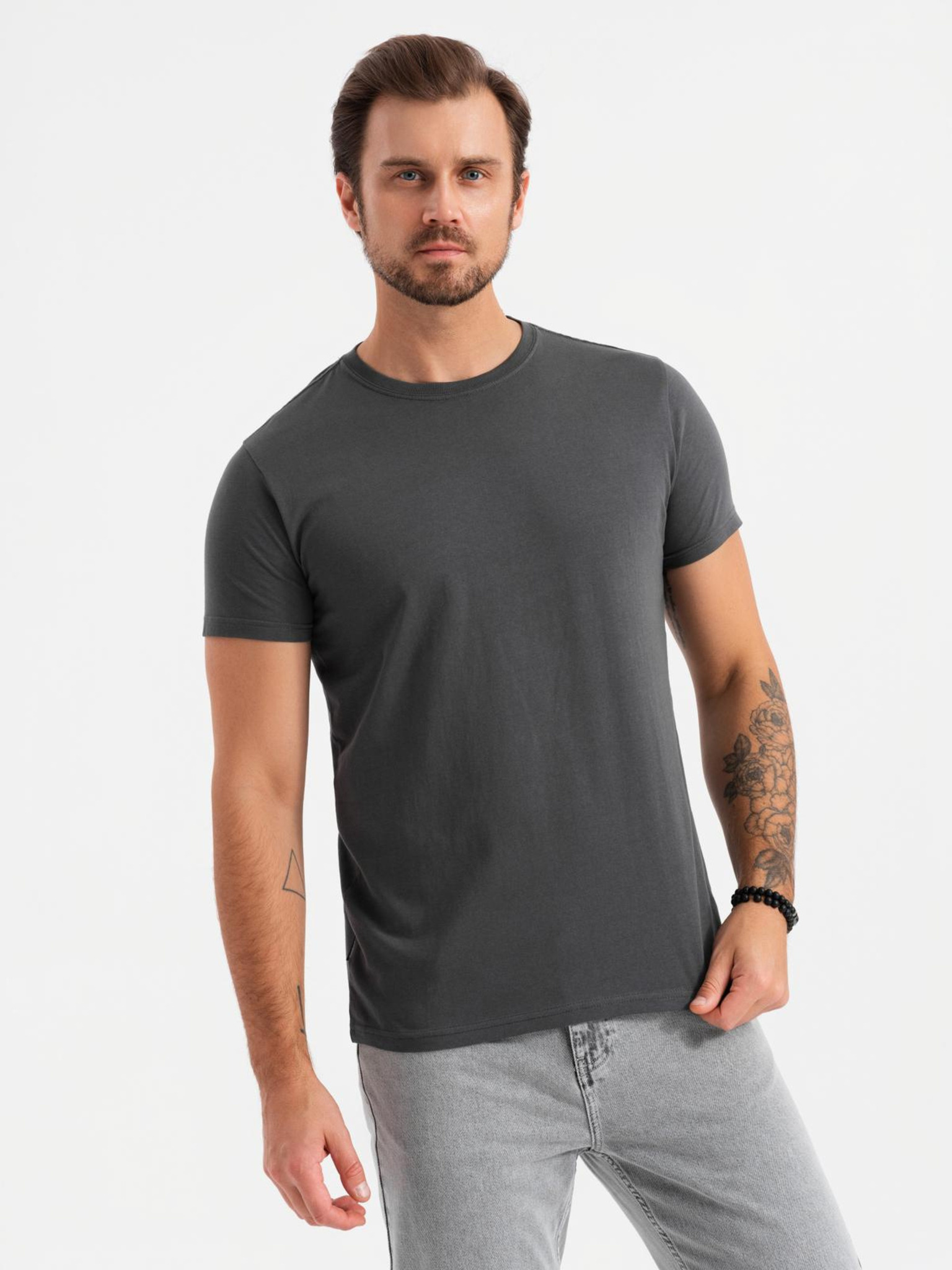 Moška bombažna majica s cvetličnim tiskom - siva V3 OM-TSFP-0262 Ombre Clothing