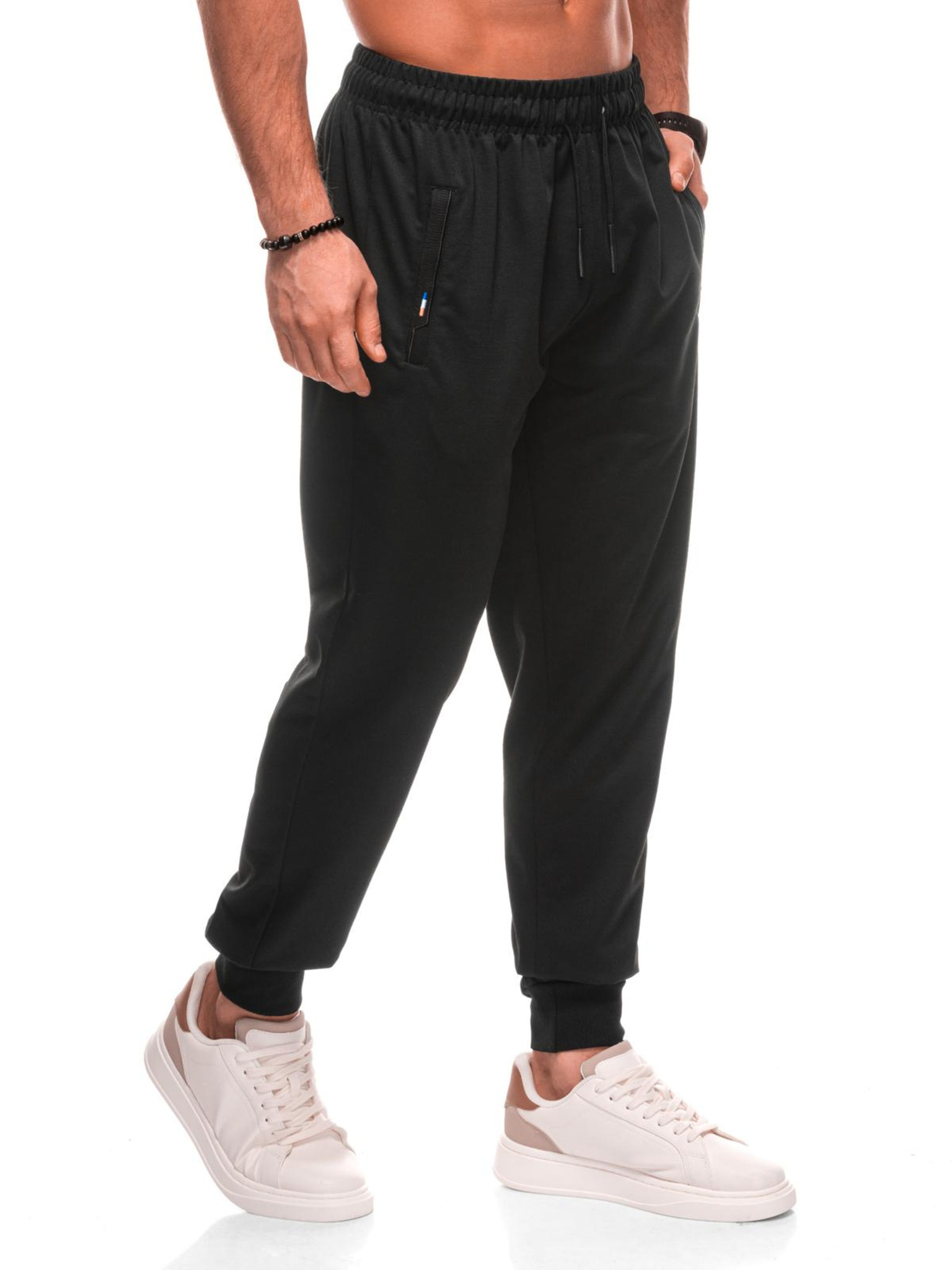 Moške trenirka hlače s kontrastnim obrobjem - črne
