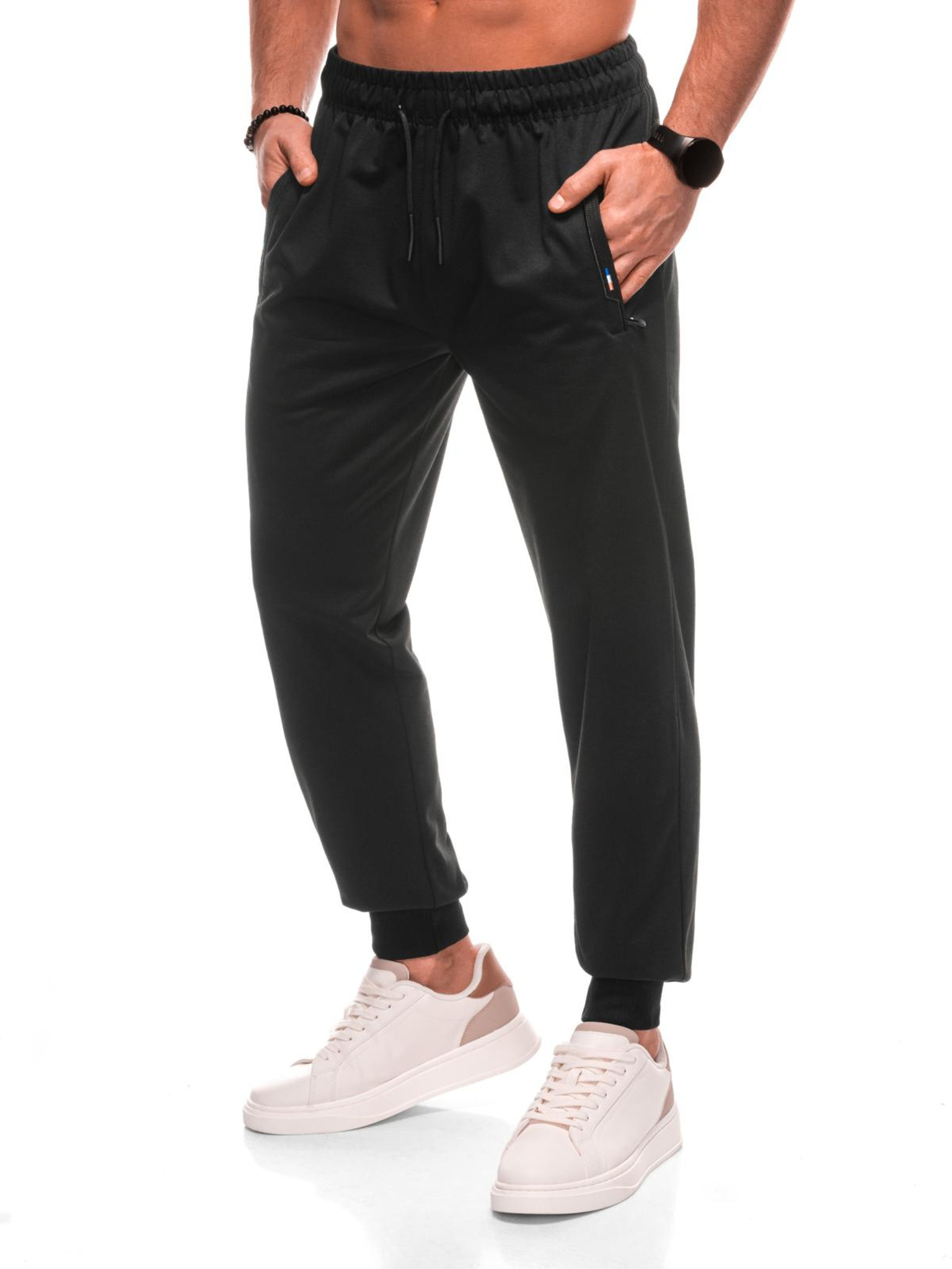 Moške trenirka hlače z rebrastimi manžetami in okrasnim zadrgo Ombre Clothing