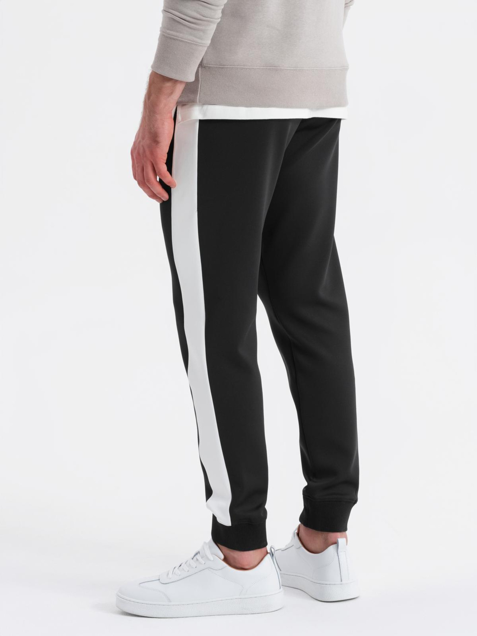 Moške jogger hlače z kontrastnimi črtami - bež