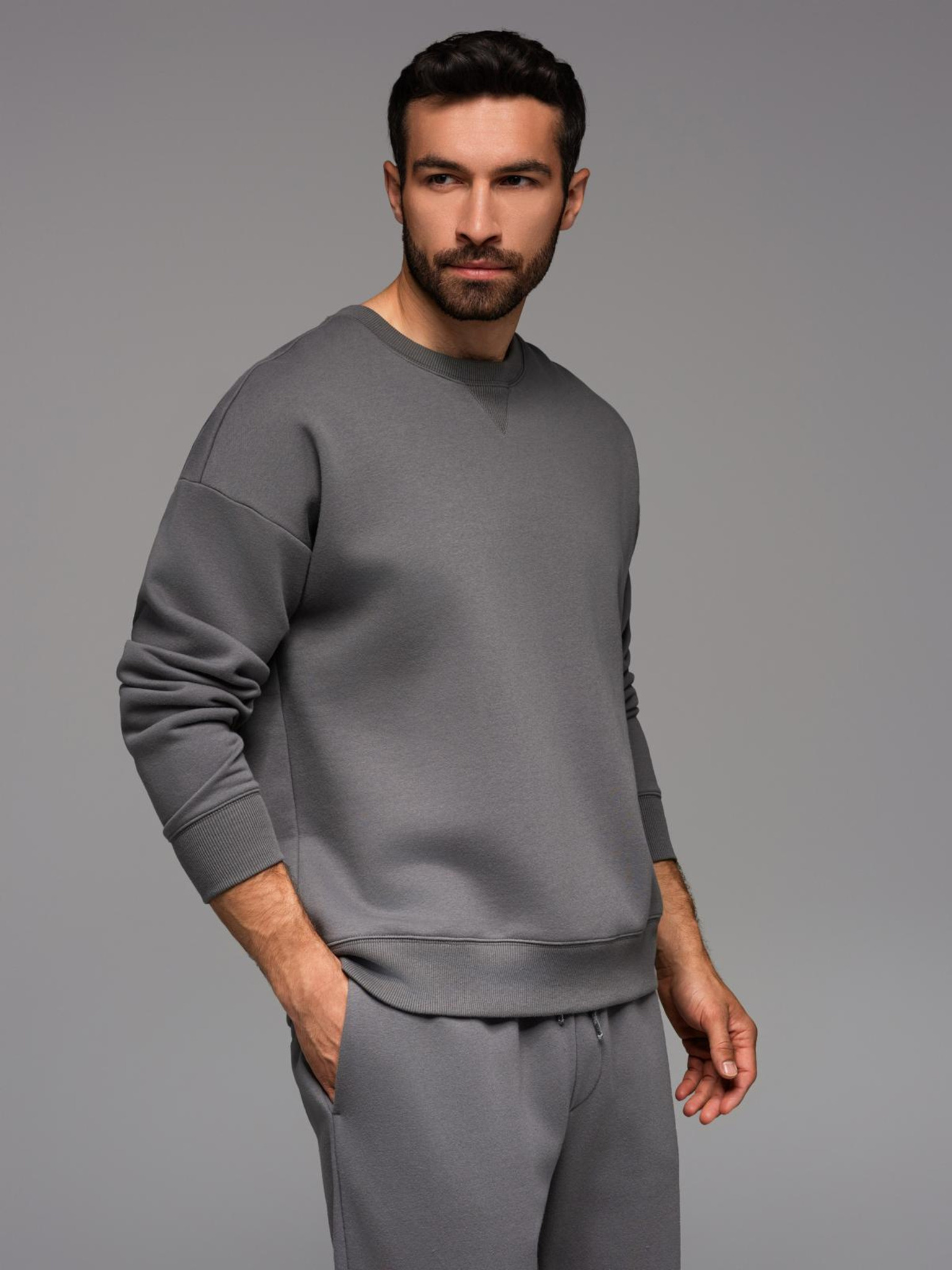 Moška jopica z visokim ovratnikom in črtami - siva melanž