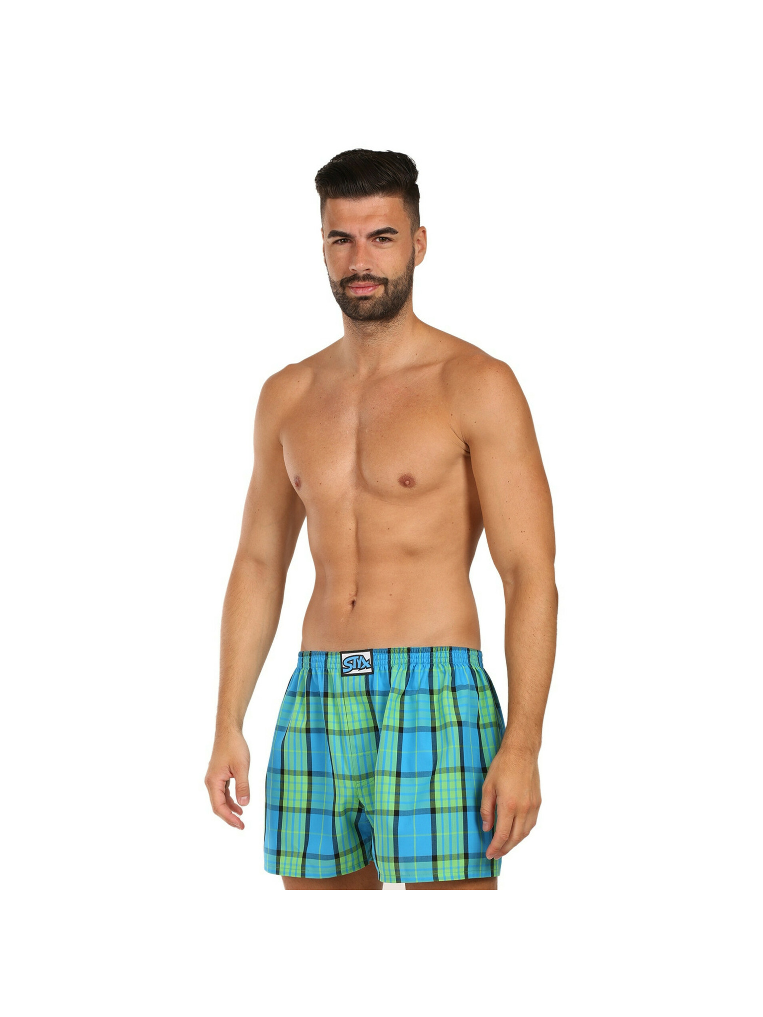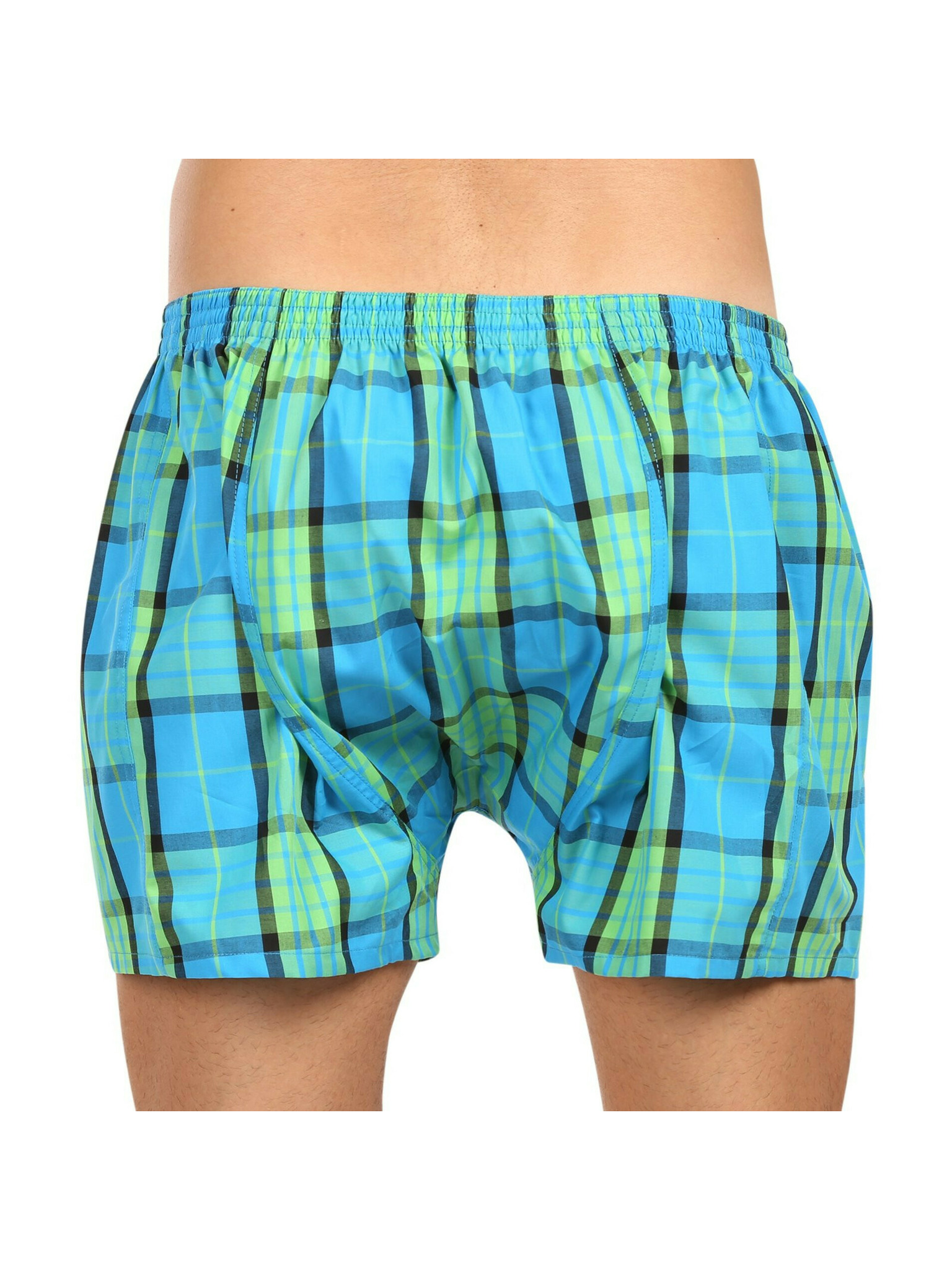 Komplet treh moških karirastih kratkih hlač v modri, zeleni in oranžni barvi STYX