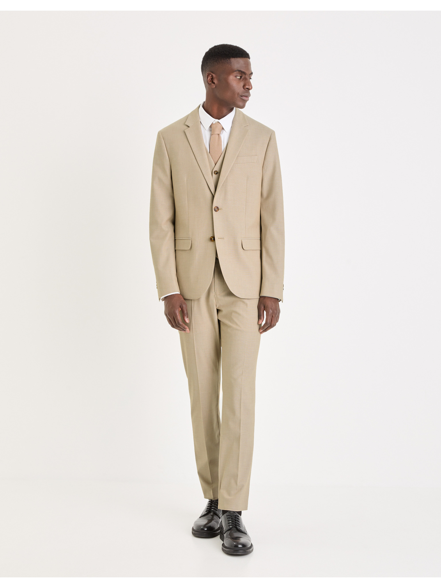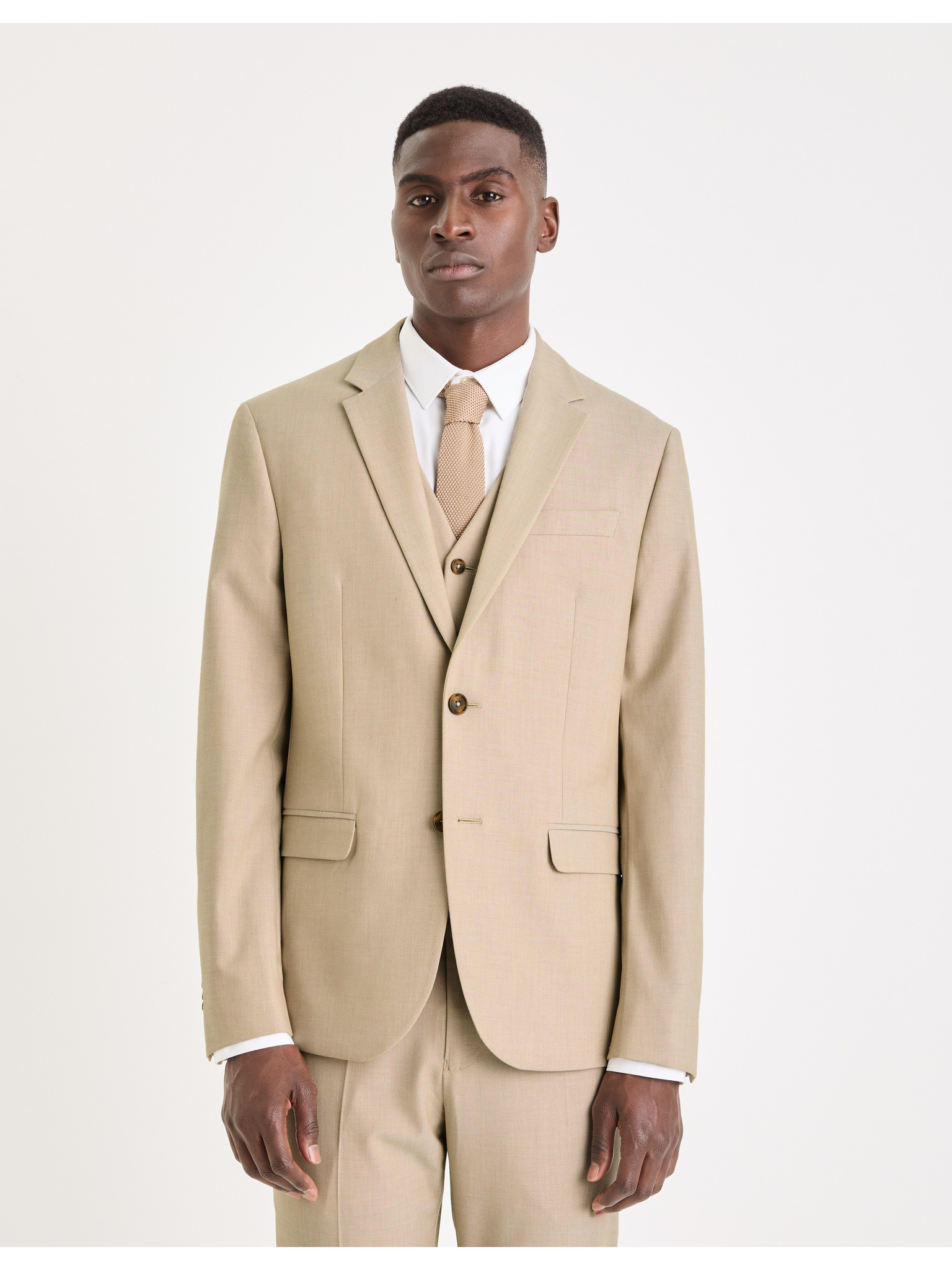 Moški bež blazer SLIM iz rahlo strukturiranega pletiva