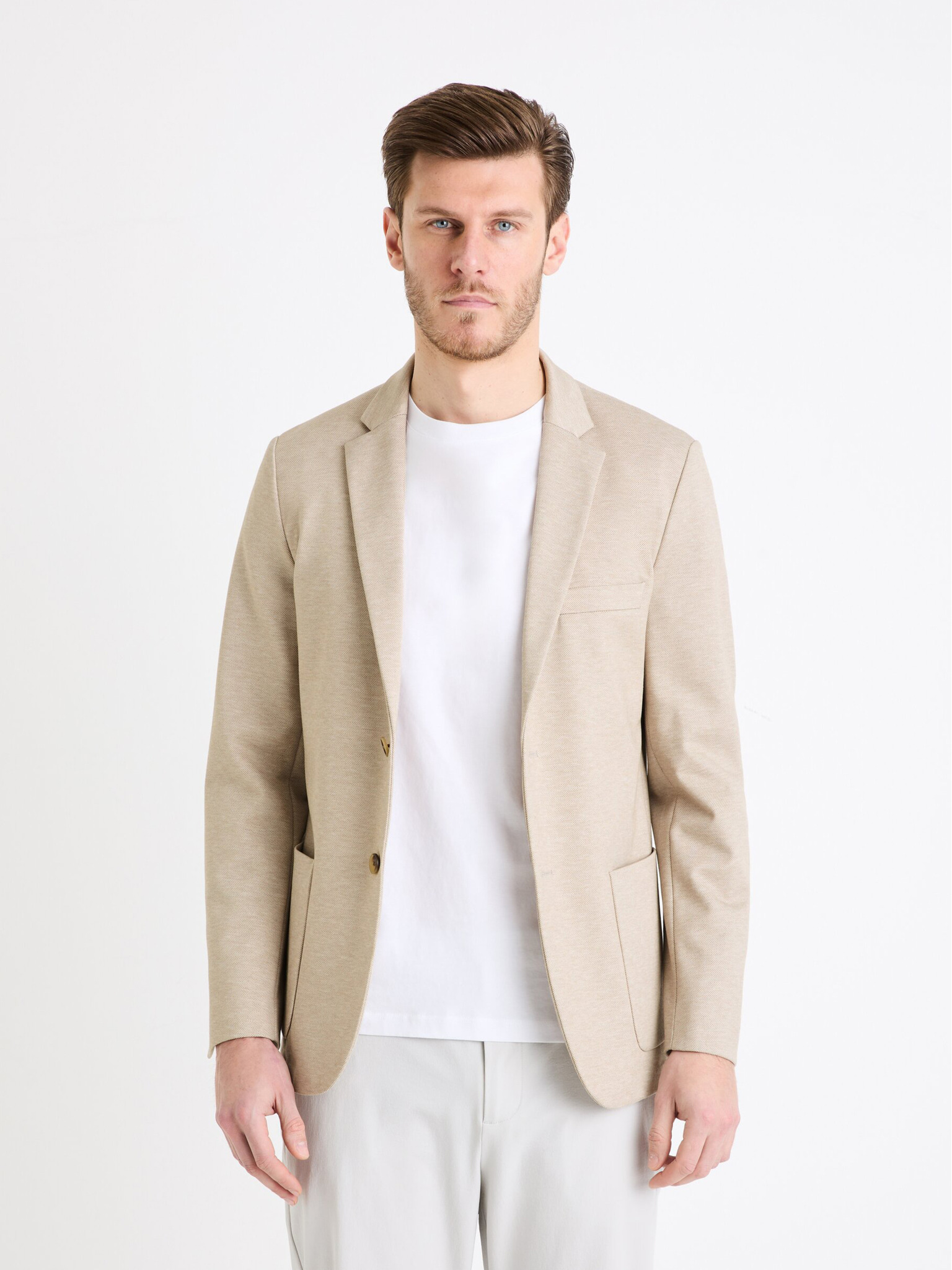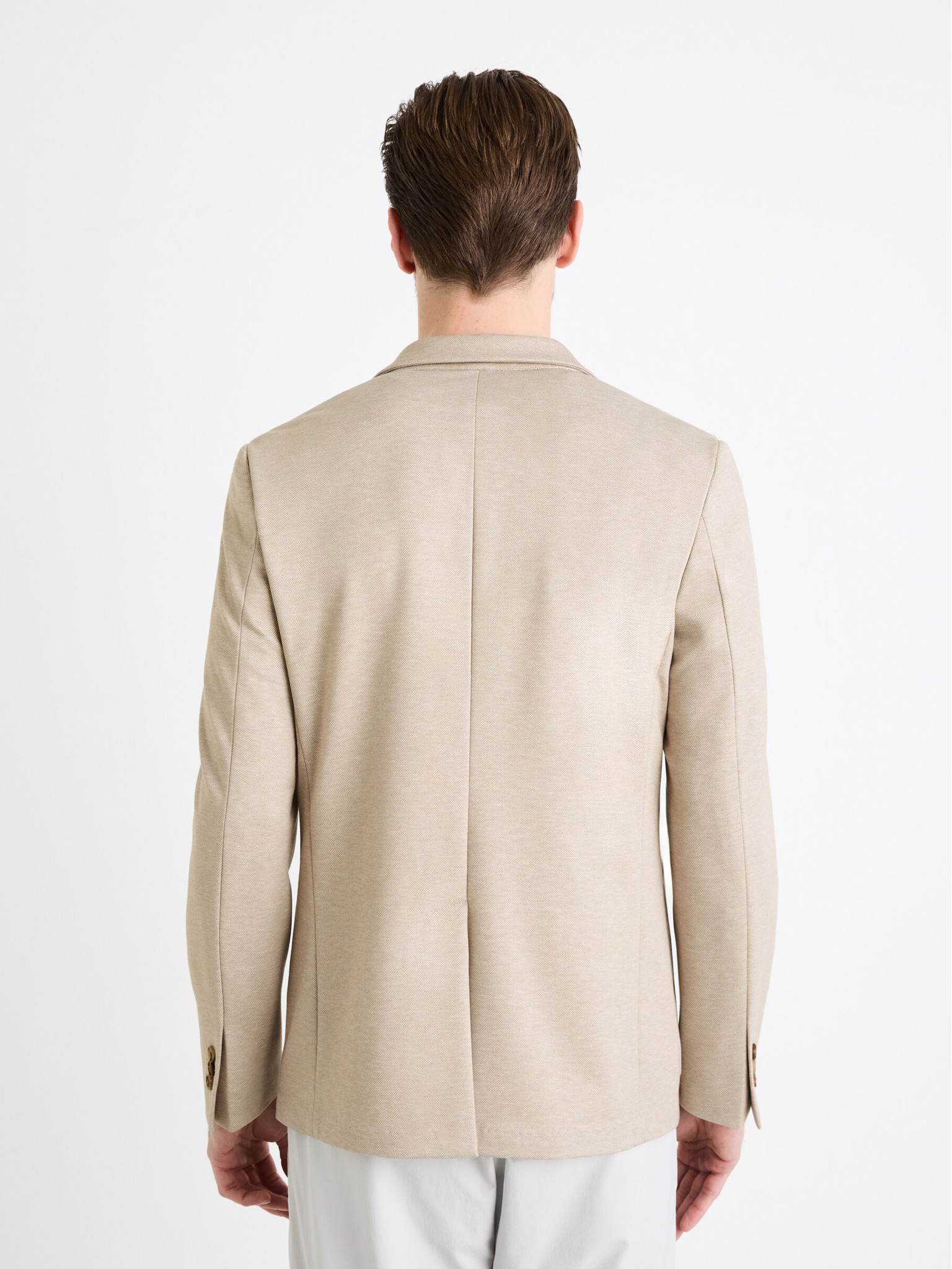Moški bež blazer SLIM iz rahlo strukturiranega pletiva