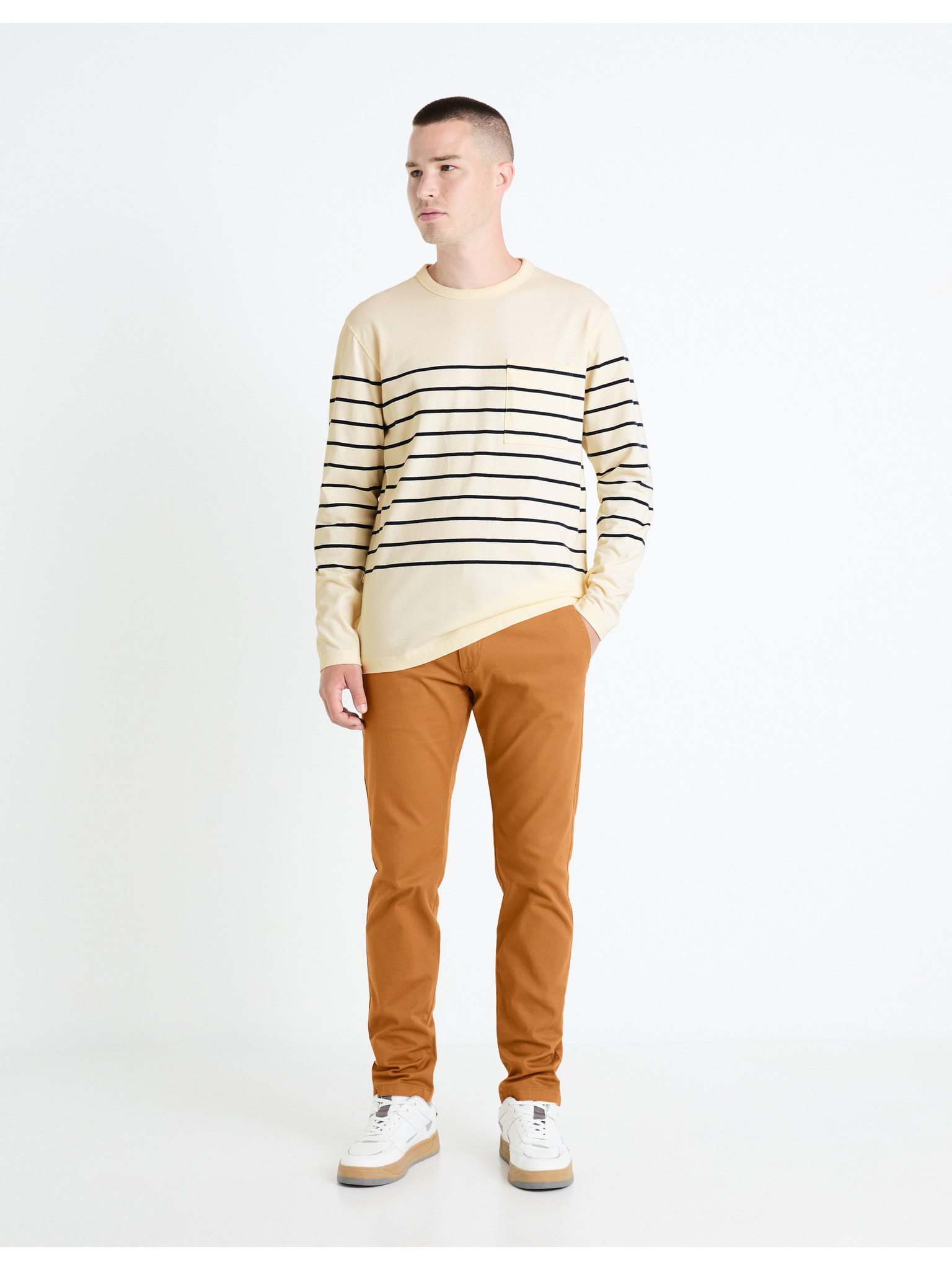 Bela moška majica z dolgimi rokavi Celio Fabeille2 regular