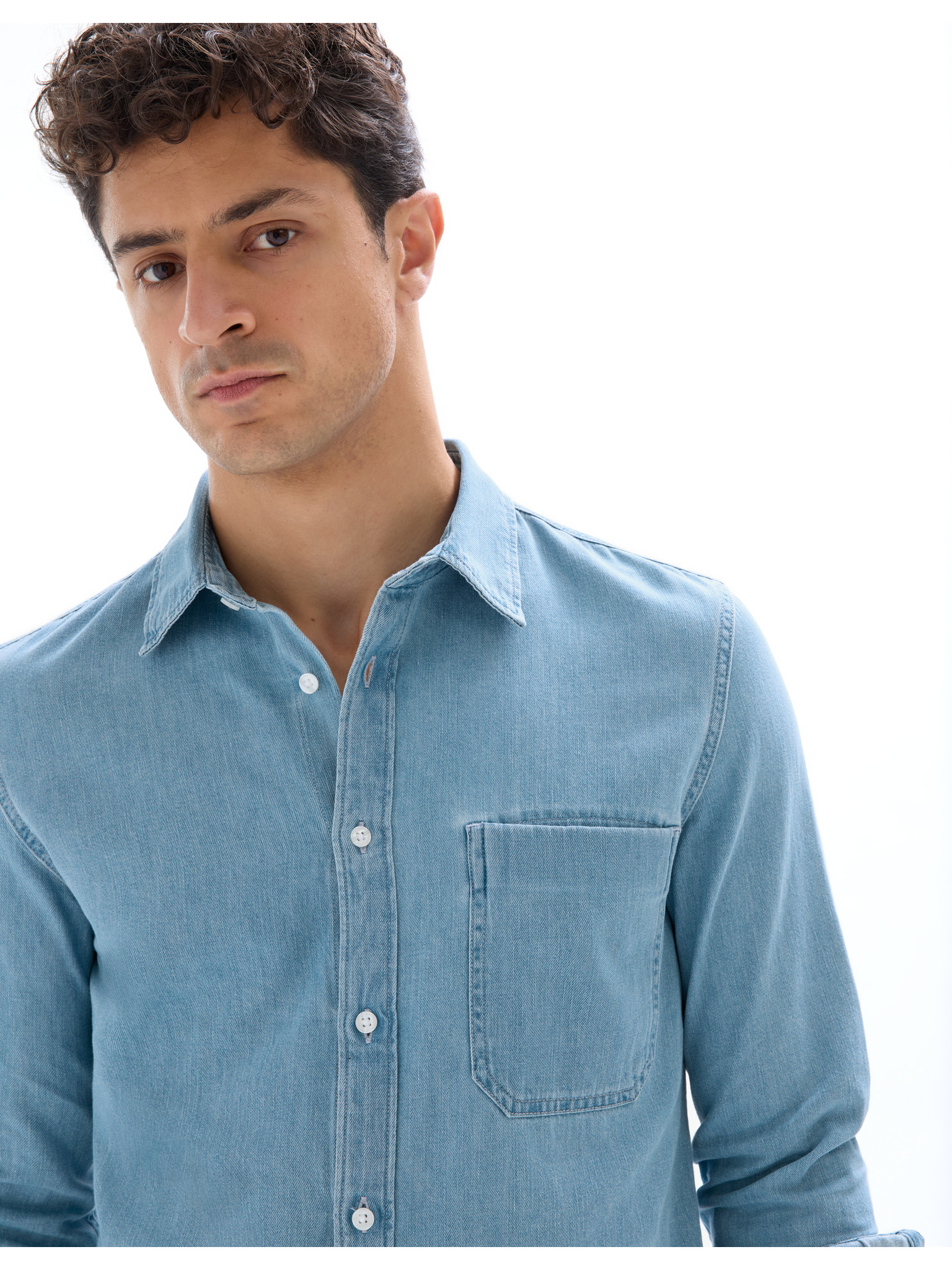 Moška srajca iz finega džinsa z vzorcem in žepom - svetlo modra Ombre Clothing