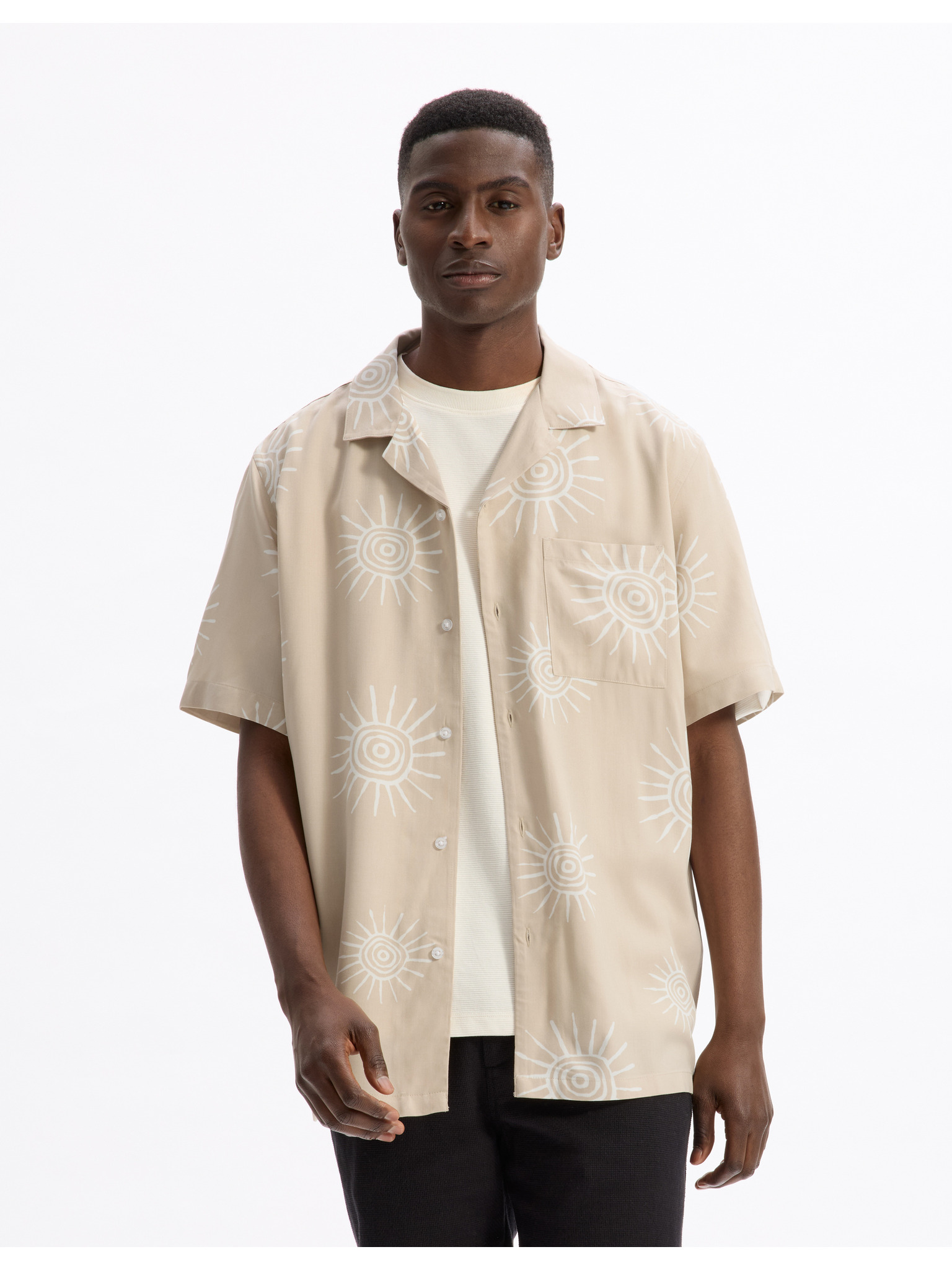 Moška srajca s kratkimi rokavi in kubanskim ovratnikom Bež Ombre oblačila
