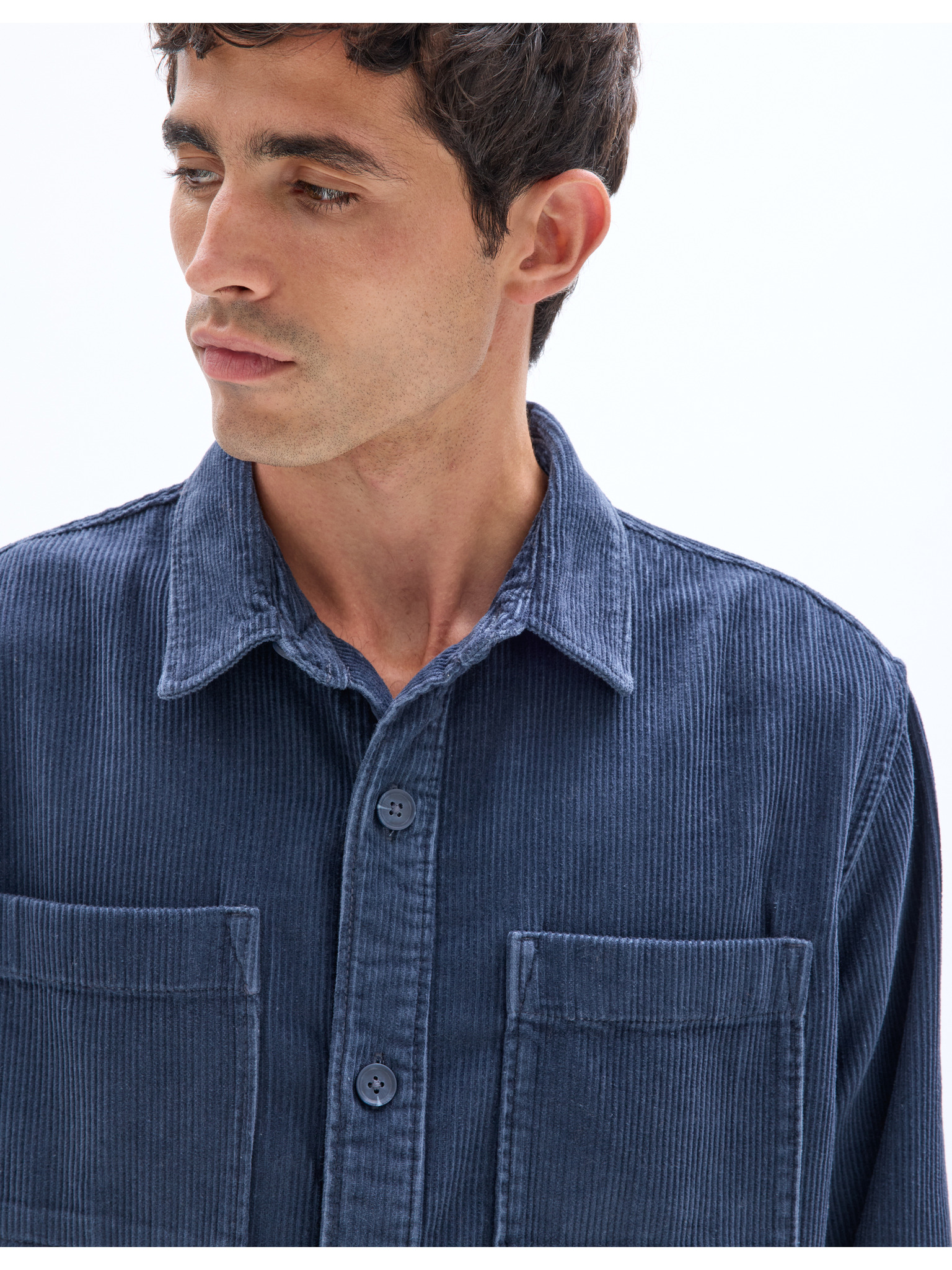 Moška srajca iz finega džinsa z vzorcem in žepom - svetlo modra Ombre Clothing