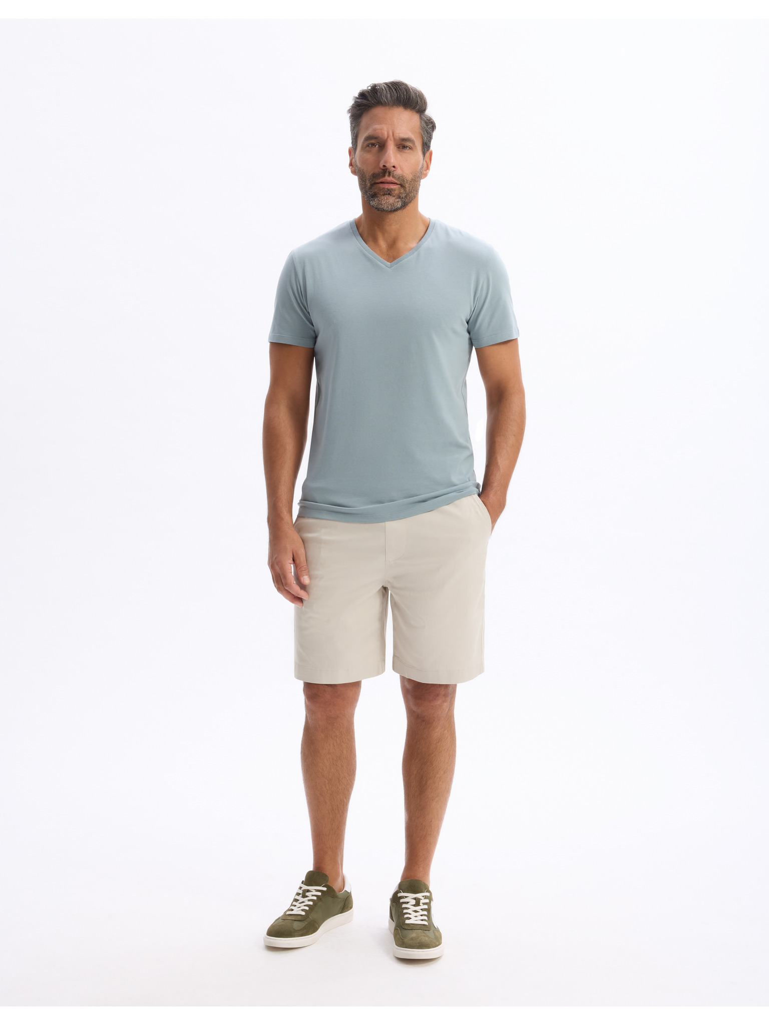 Moške klasične chino kratke hlače z zavihano hlačnico - bež