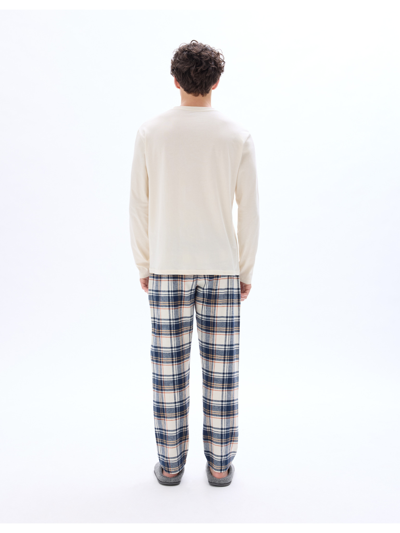 Nevtralna karirasta pižama iz čiste bombažne tkanine Marks & Spencer smetanasta