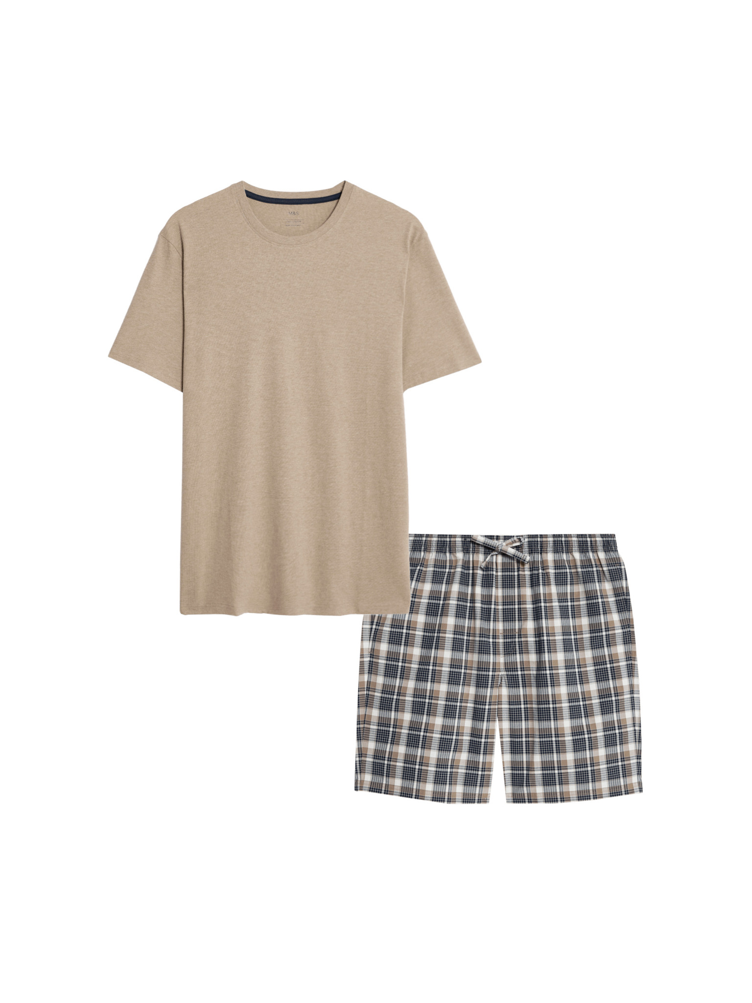 Karirasta pižama iz čiste bombažne tkanine z odprtim ovratnikom Marks & Spencer siva