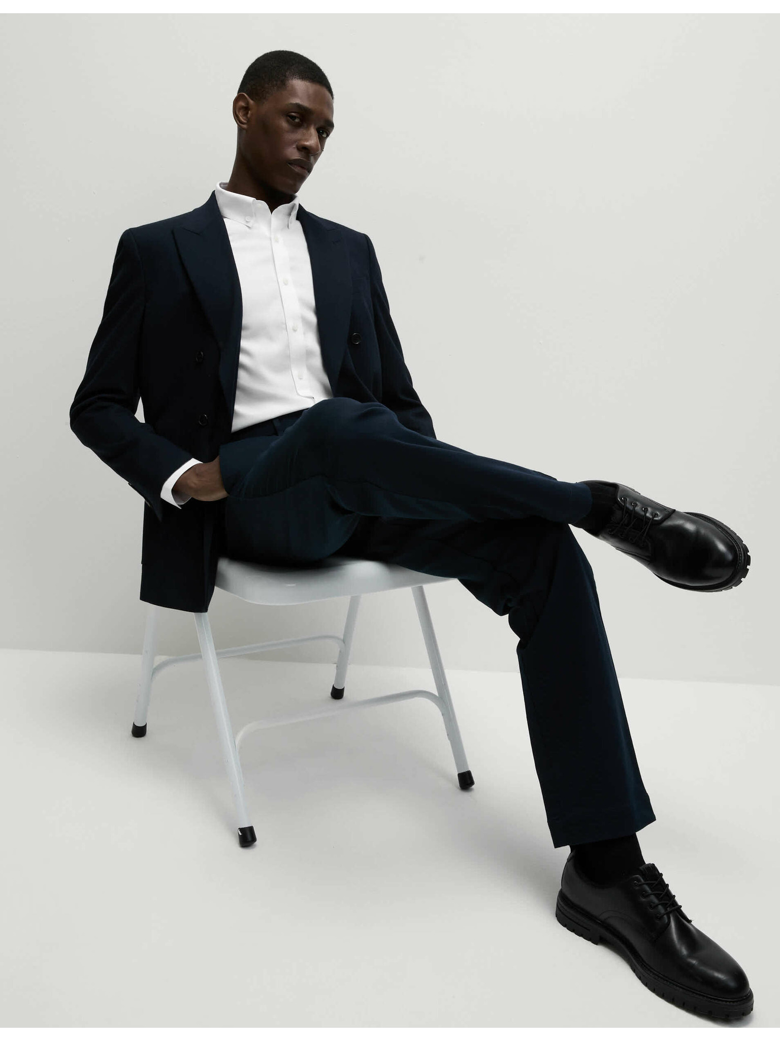 Keperjasta srajca ozkega kroja iz luksuzne bombaže z dvojno manšeto Marks & Spencer mornarsko modra