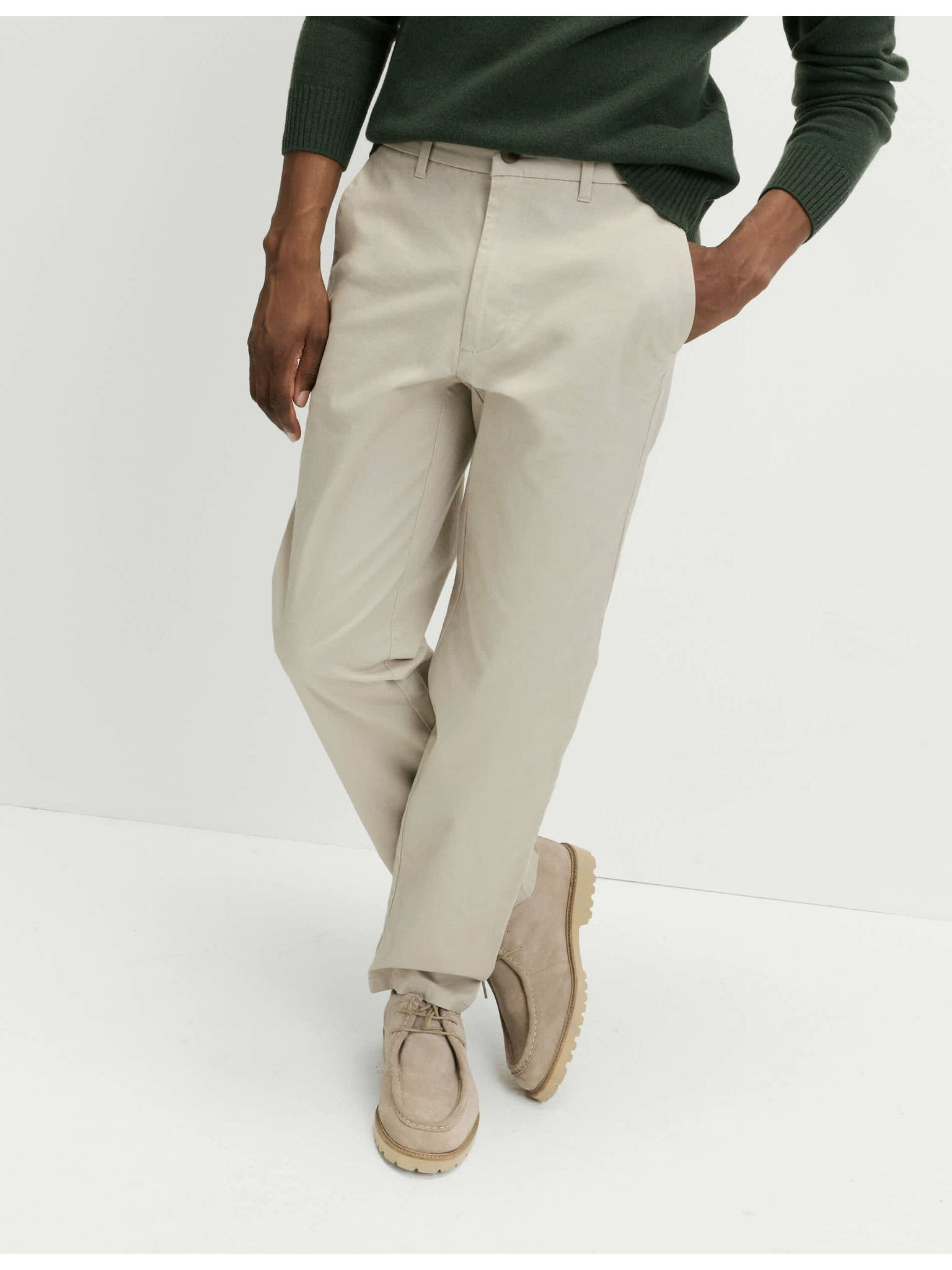 Super lahke hlače chino, običajnega kroja Marks & Spencer zelena