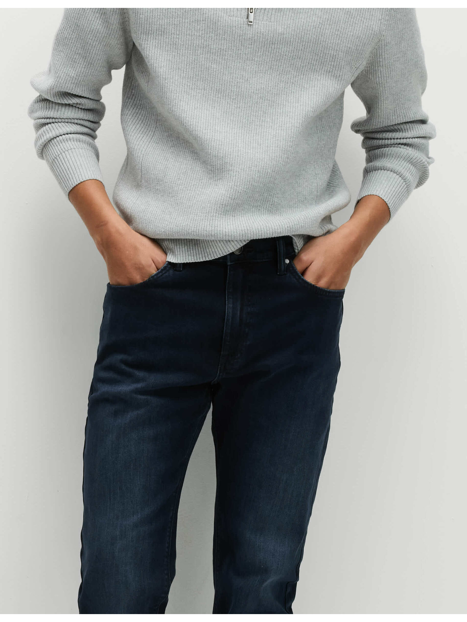 Raztegljive kavbojke v japonskem slogu, ozek rez Marks & Spencer mornarsko modra