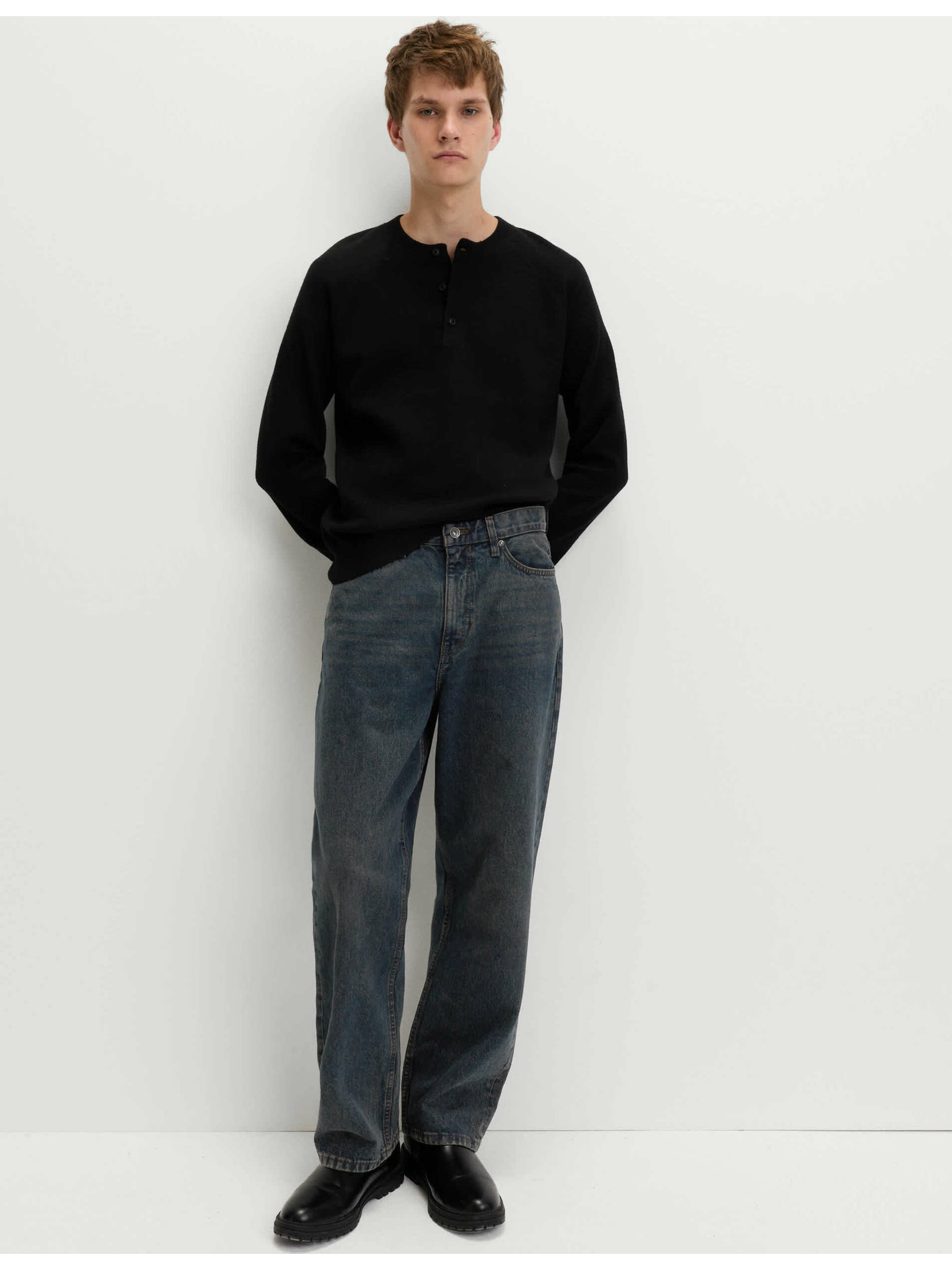 Authentic ohlapne trdne kavbojke Marks & Spencer črna