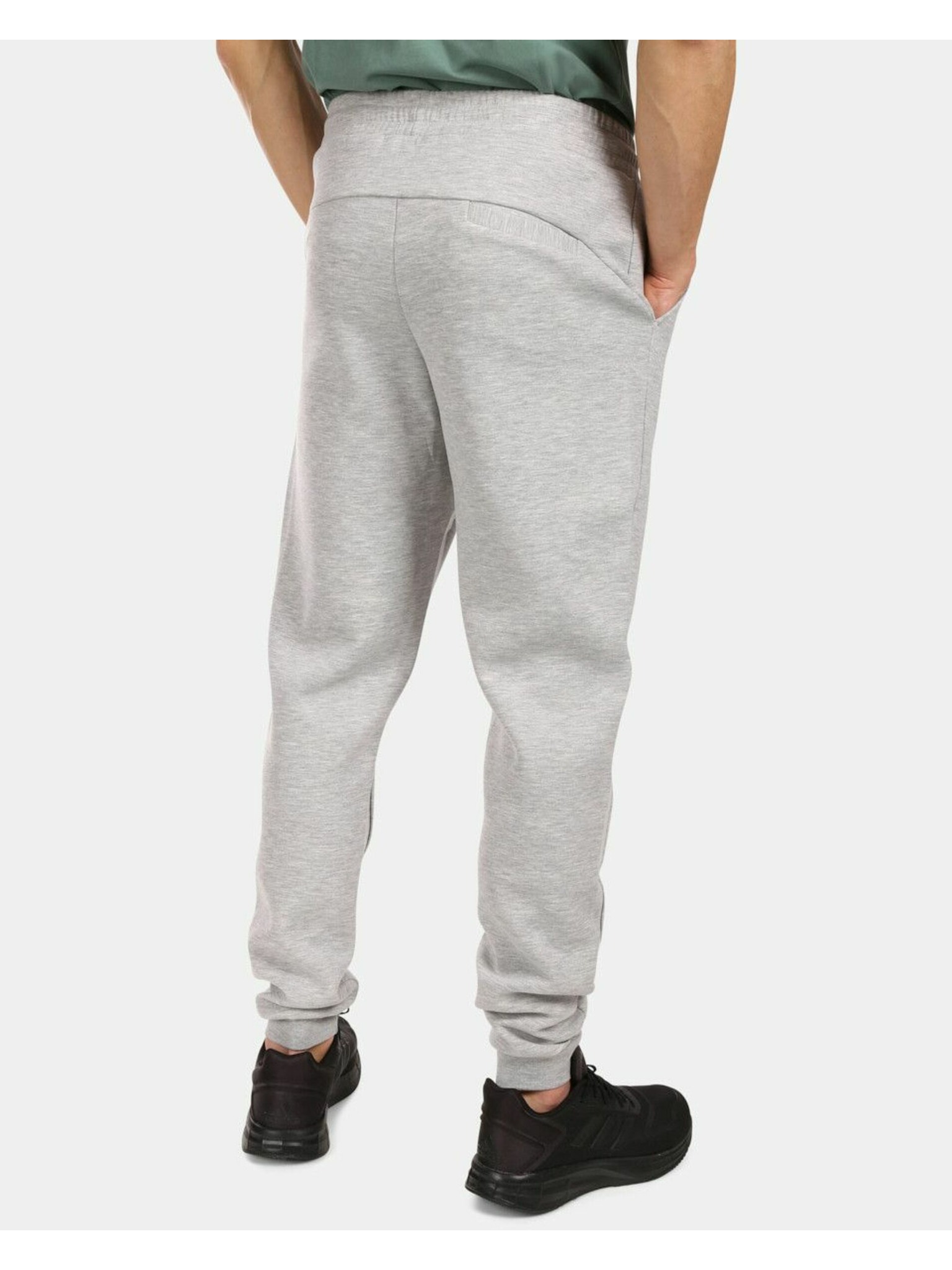 Moške trenirka hlače z obrobjem in rebrastimi hlačnicami - siva melanž