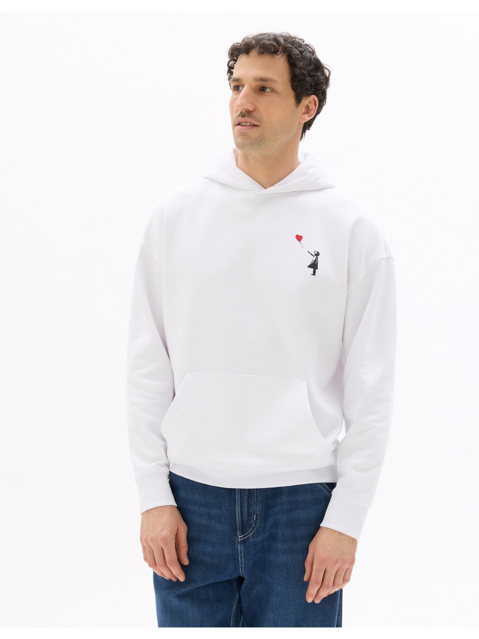 Bela moška kapuca s potiskom Ombre Clothing