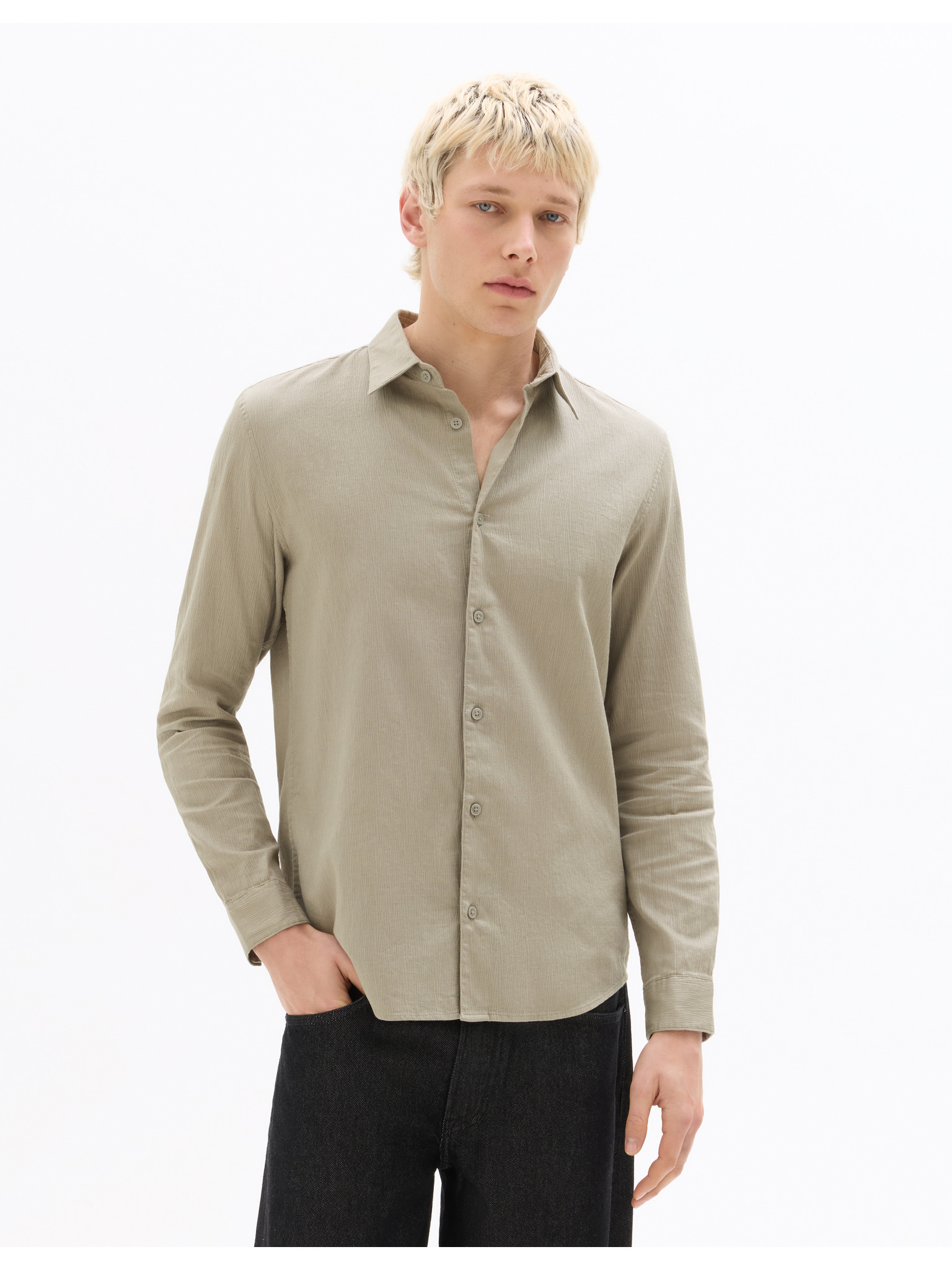 Moška bombažna srajca REGULAR FIT s finimi črtami Ombre Clothing