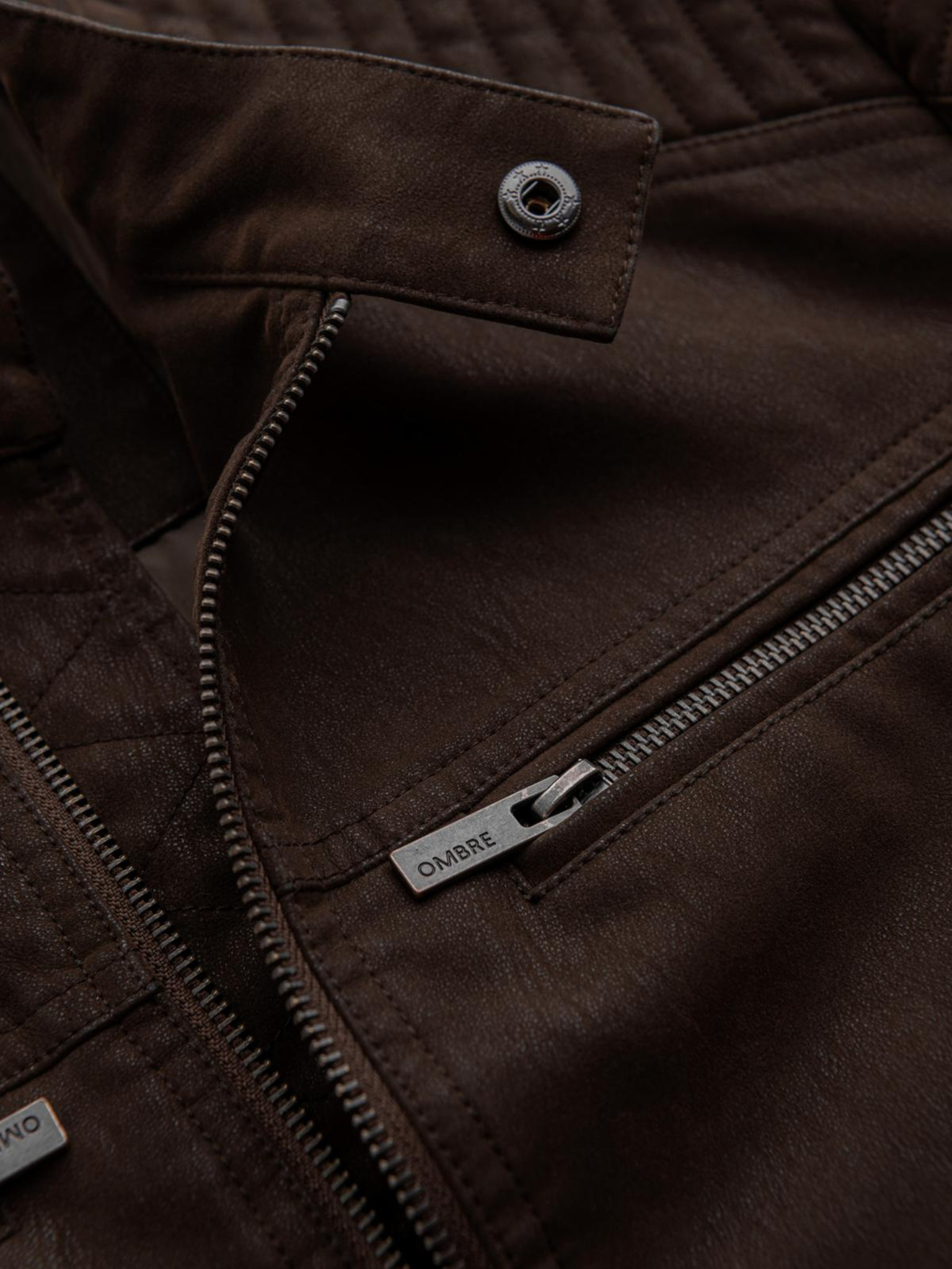 Pánska semišová bunda bomber - hnedá V1 OM-JAFL-0232 Ombre Clothing