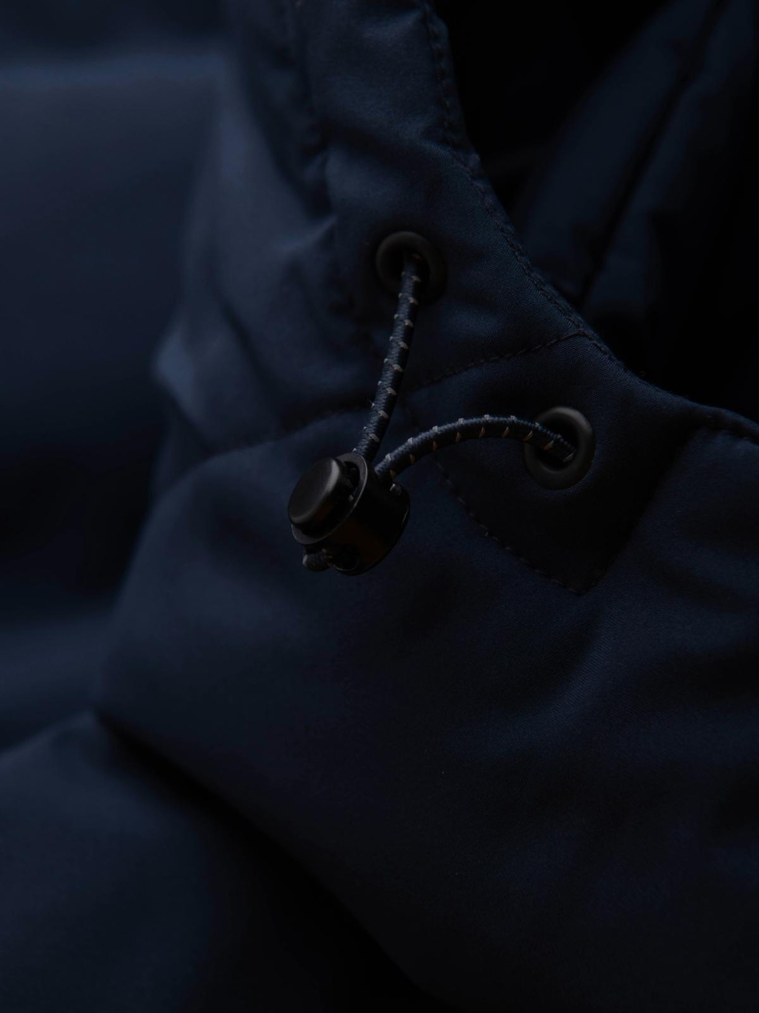 Pánska bunda s kapuco a geometrickým kosoštvorcovým prešívaním - tmavo modrá V2 OM-JAHP-0237 Ombre Clothing