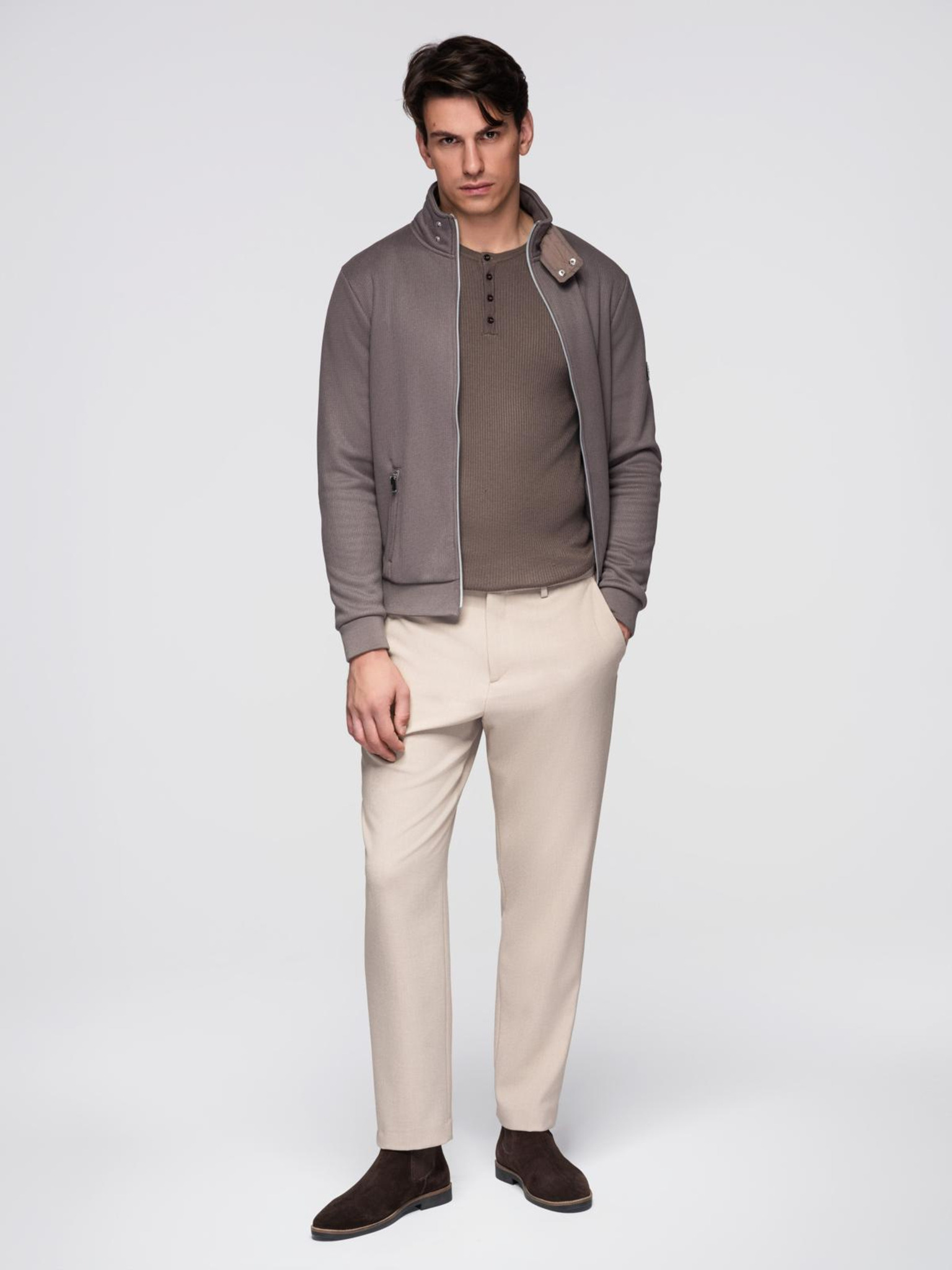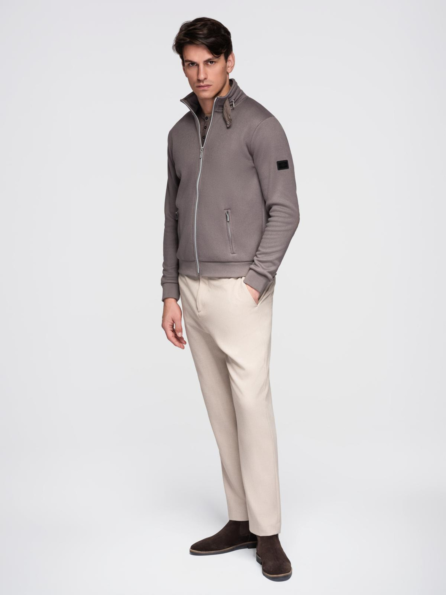 Moška lahka barvna športna jakna iz flisa bež Ombre Clothing