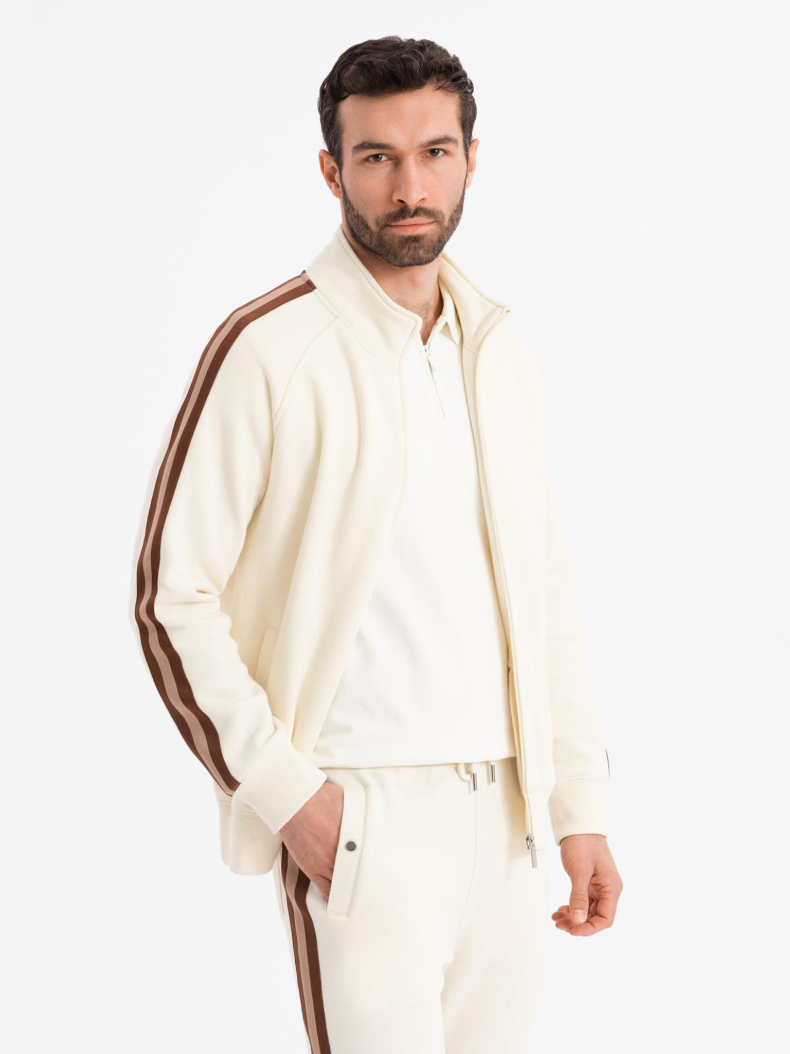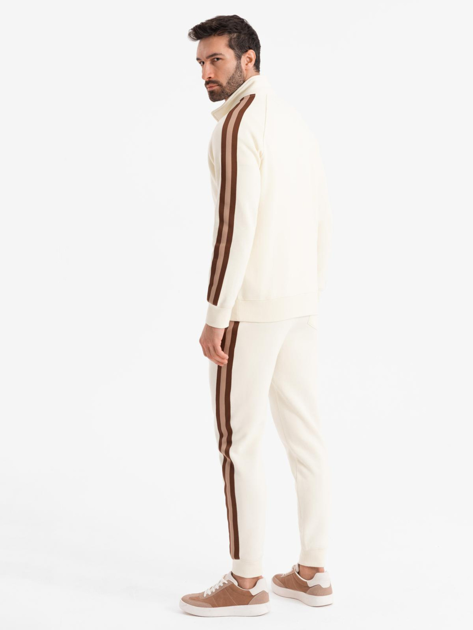Moška trenirka komplet mikina s stopničko + hlače jogger - ekru V2 Z117 Ombre Clothing
