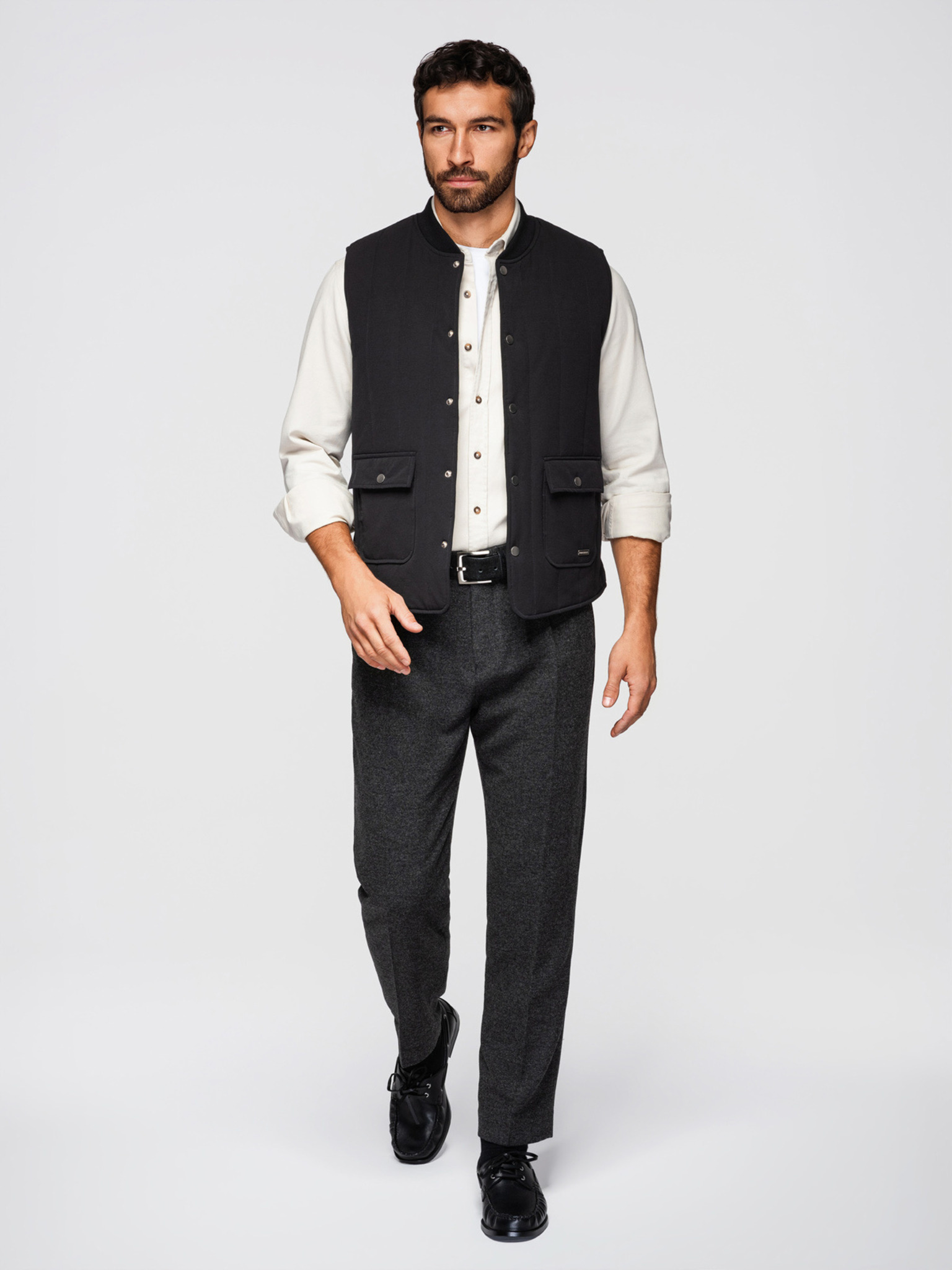Moška prešivana elegantna vest - grafit melanž V1 OM-JAVJ-0275 Ombre Clothing