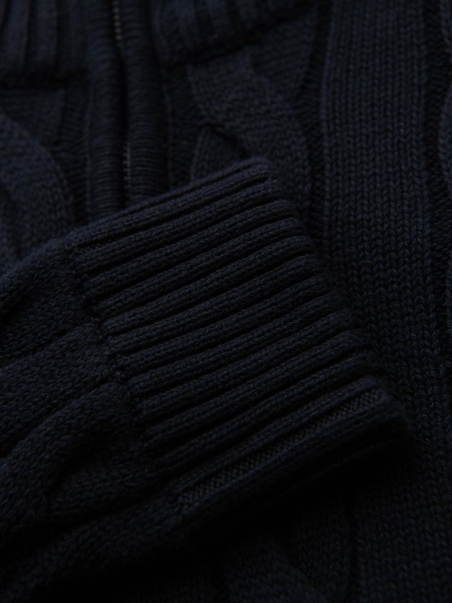 Moški pleteni pulover s strukturiranimi pikami - temno modra barva Ombre Clothing