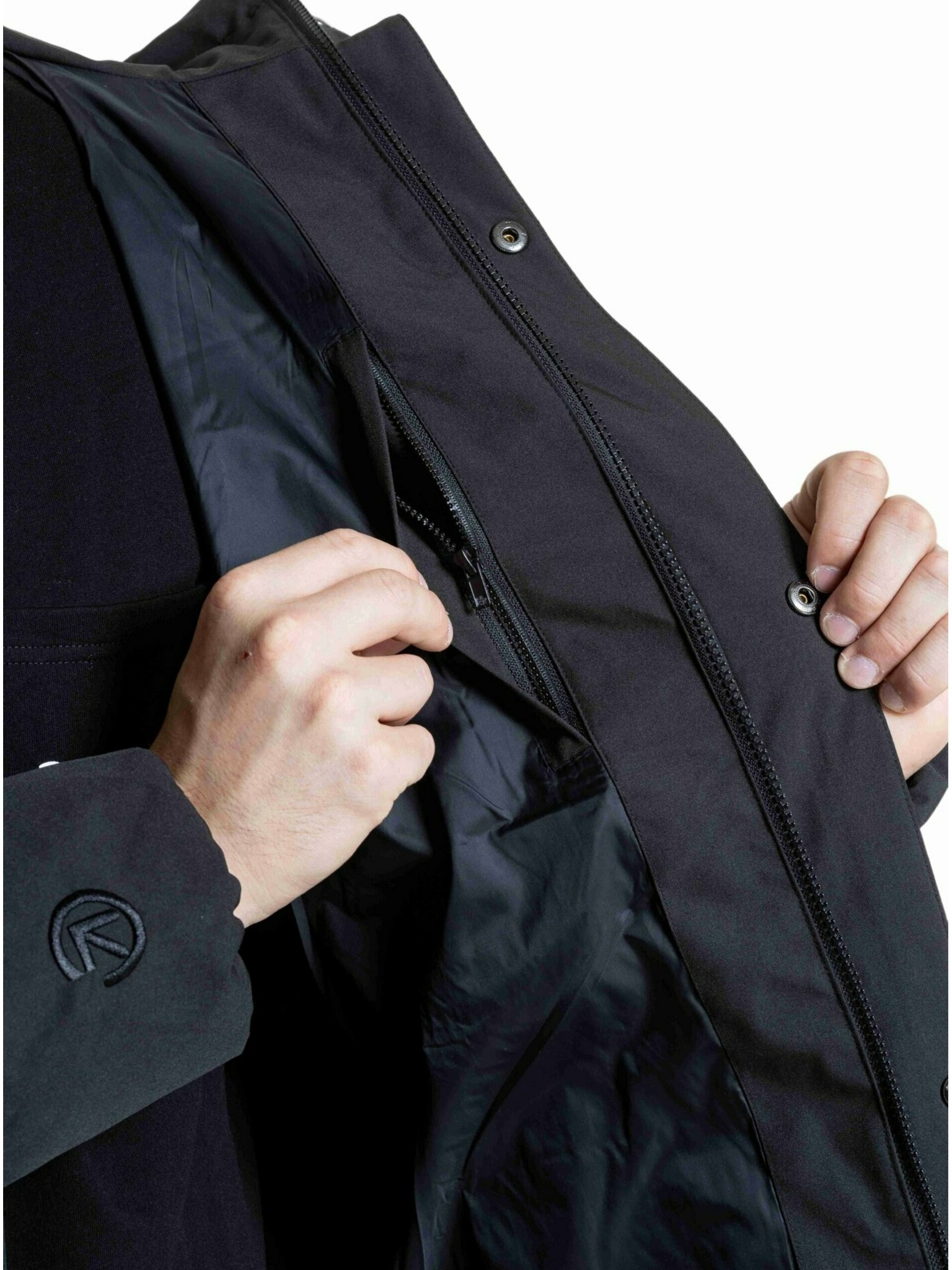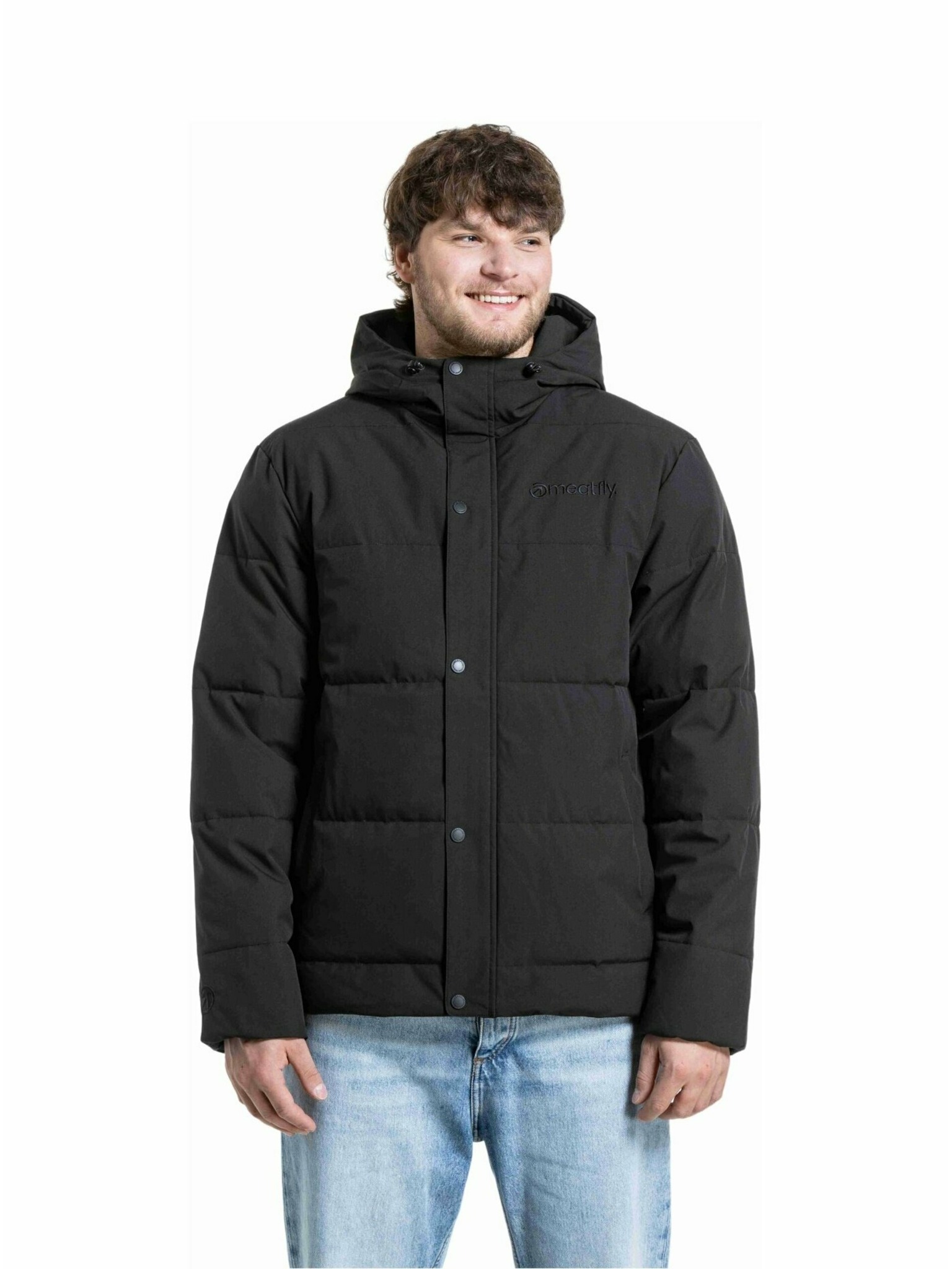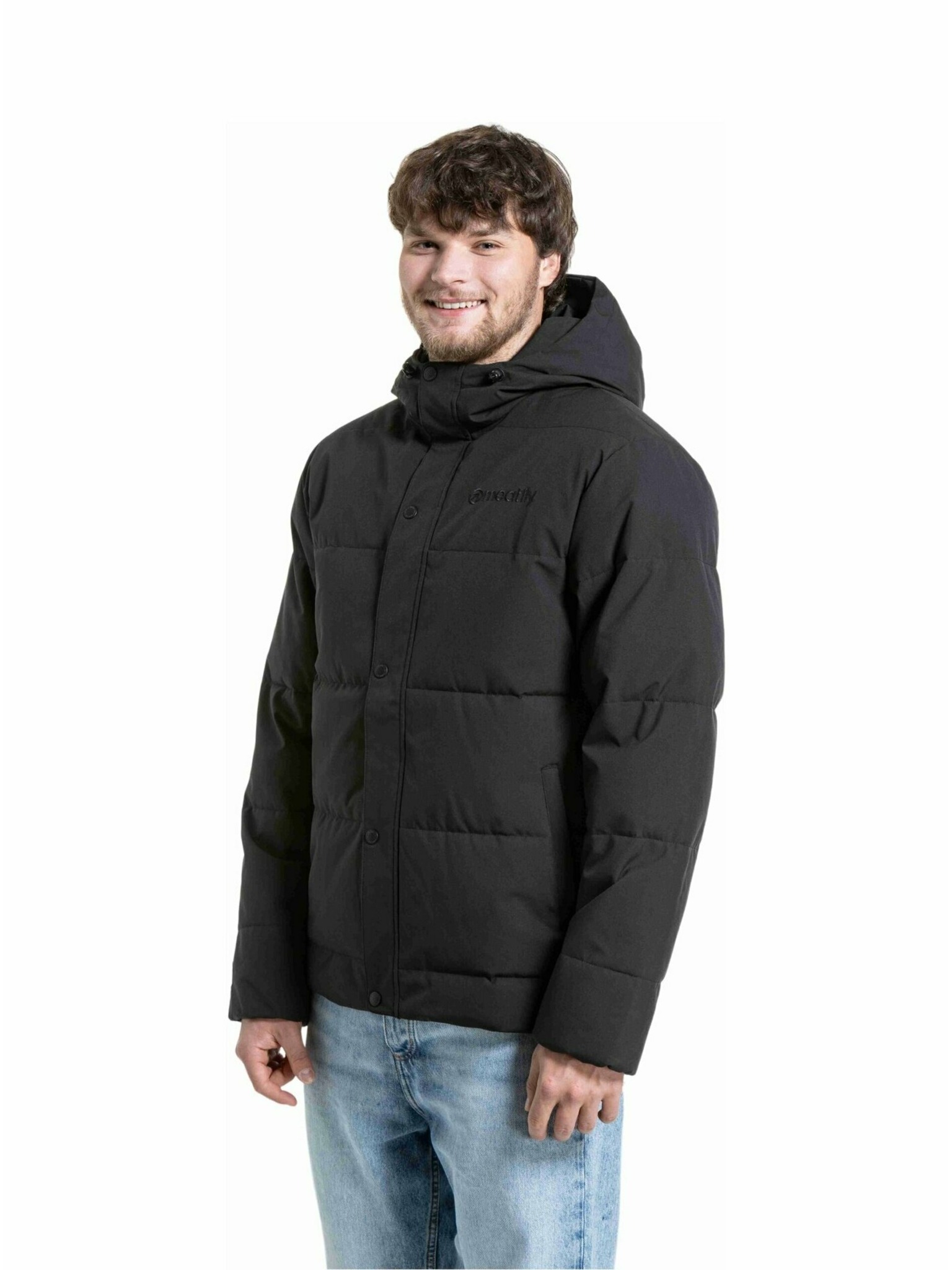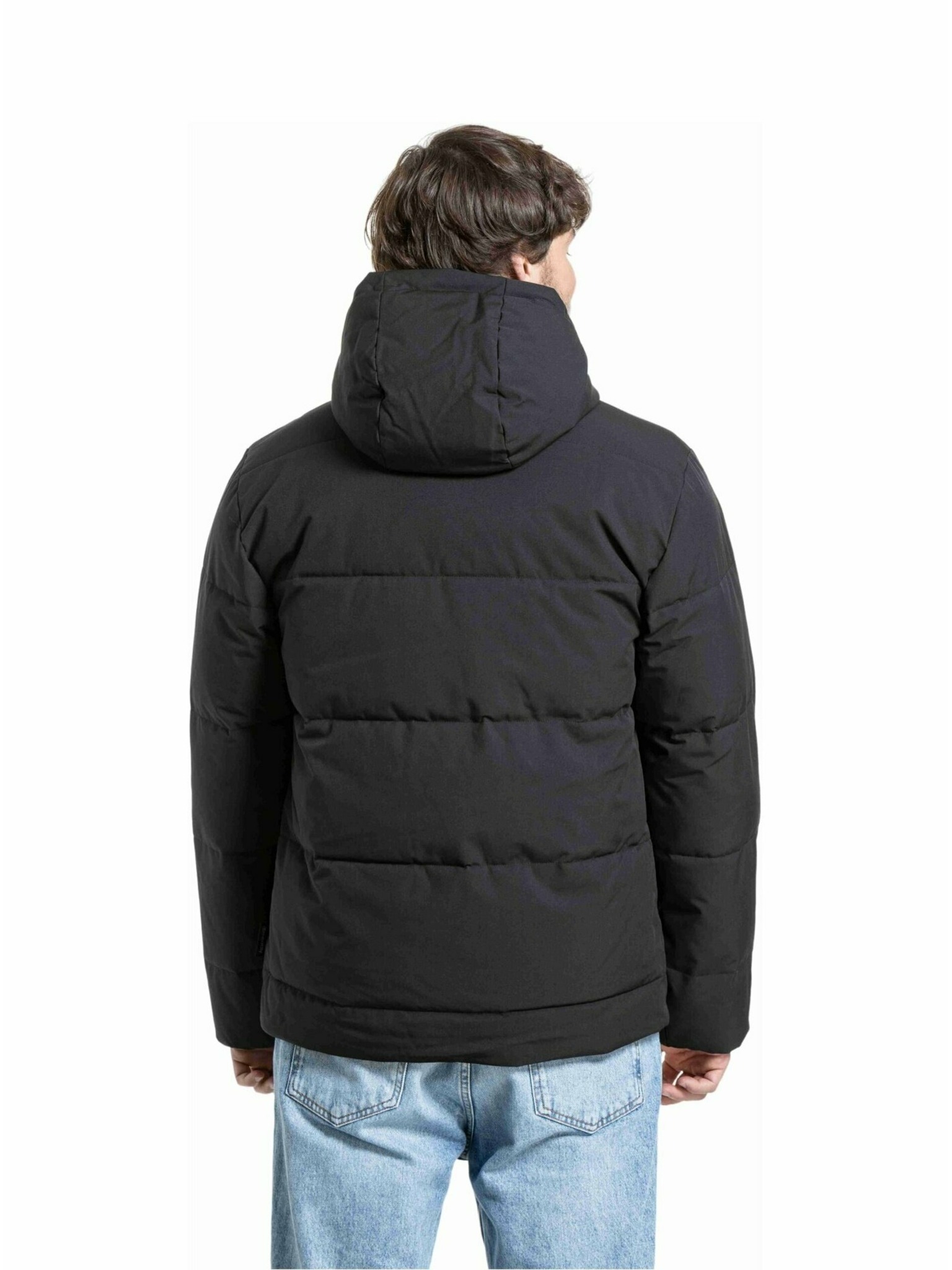 Moška jakna s kapuco in visokim ovratnikom - črna V1 OM-JANP-0222 Ombre Clothing