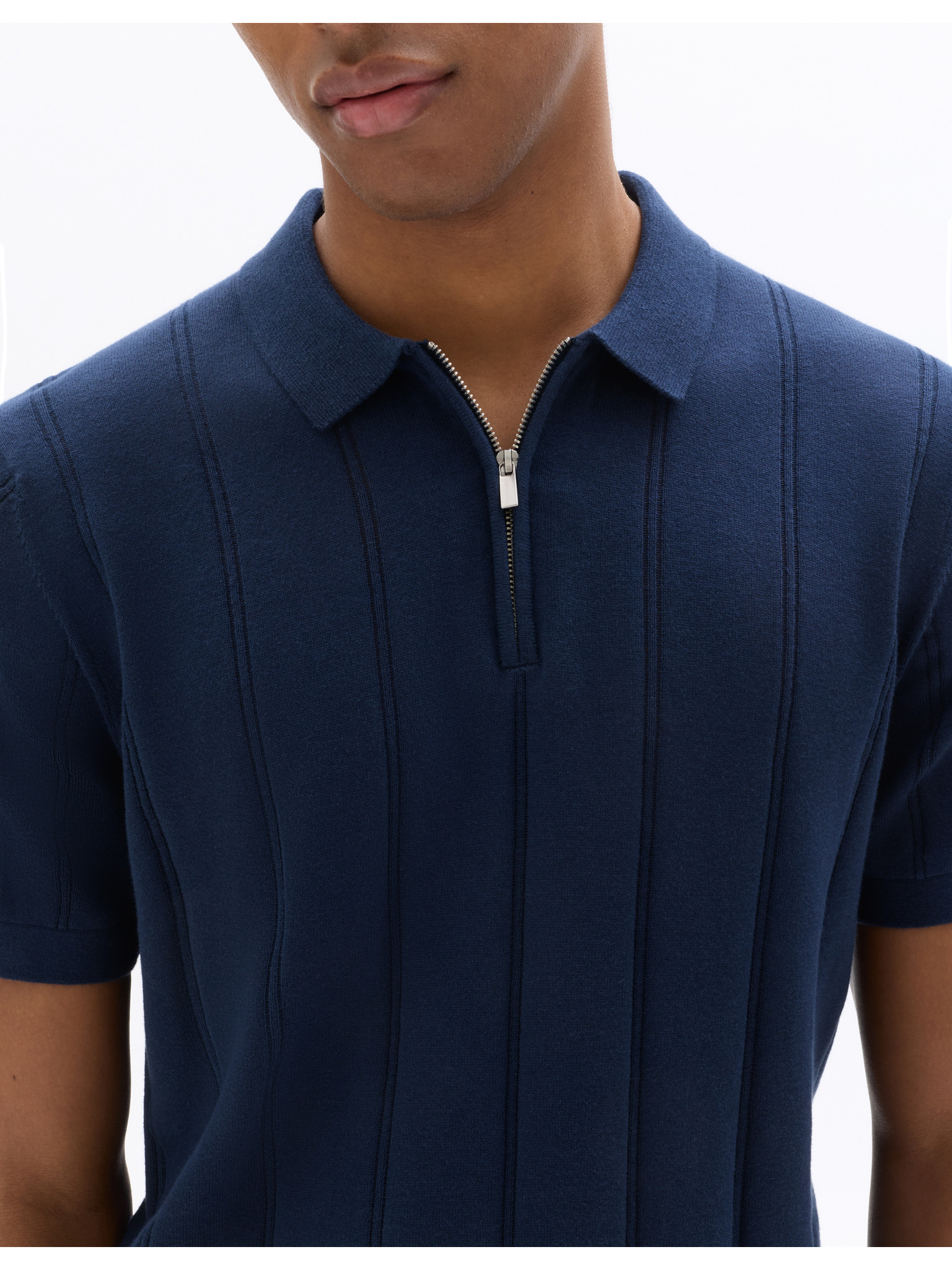 Moška stylska polo srajca iz elastične tkanine - temno modra V3 OM-POSS-0150 Ombre Clothing