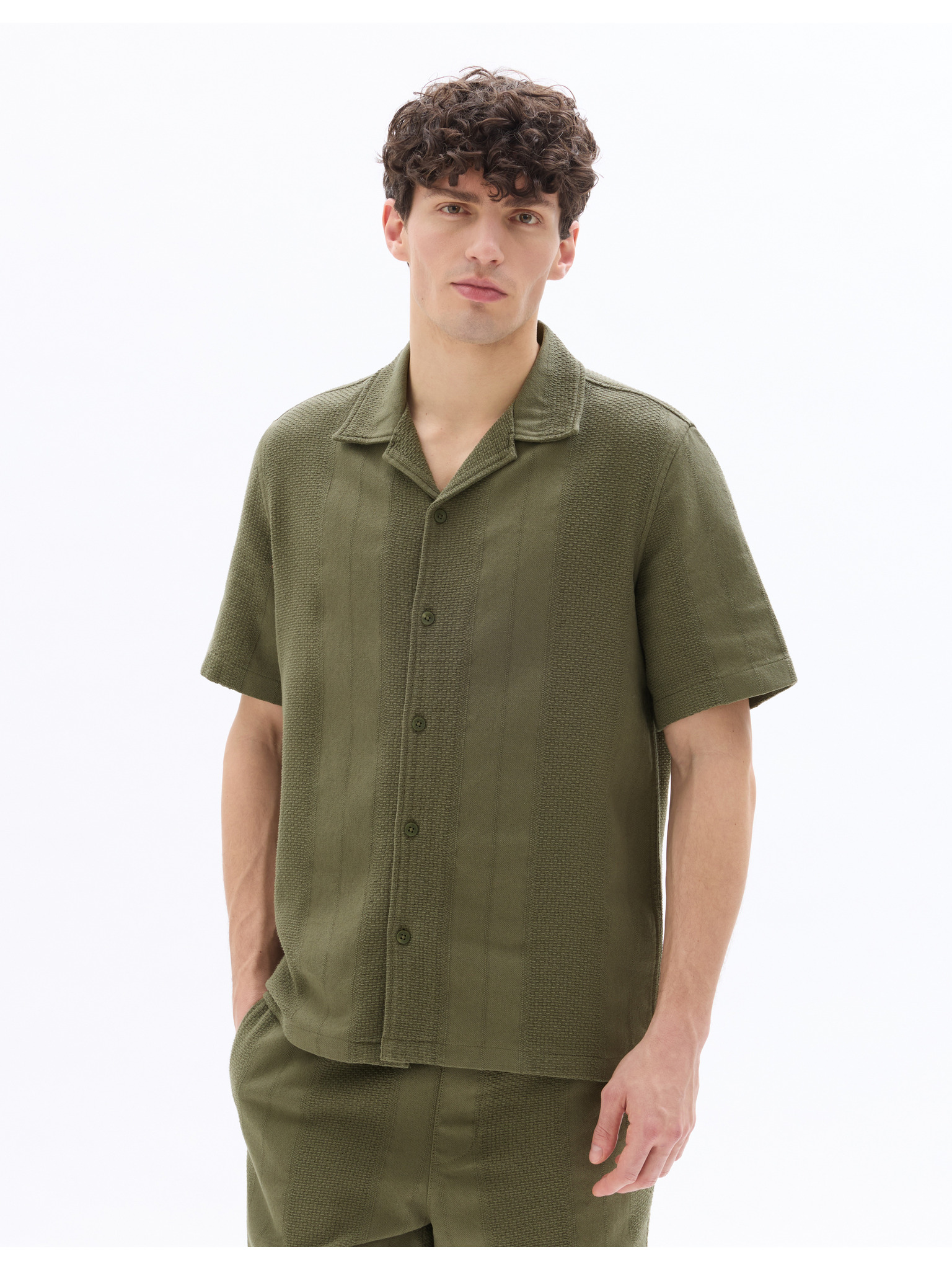 Moška srajca s kratkimi rokavi s kubanskim ovratnikom kaki Ombre oblačila