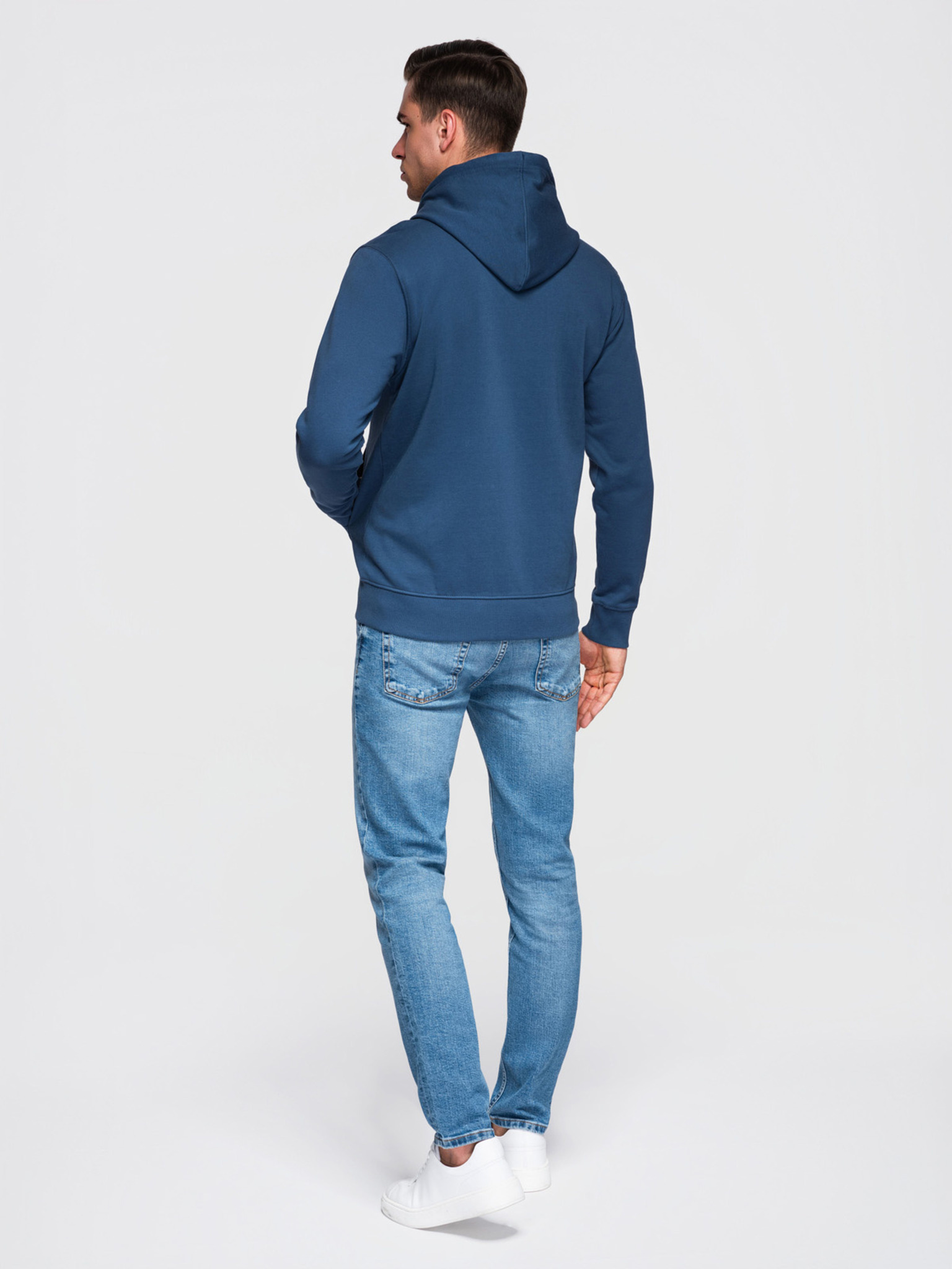 Moska bombažna elastična jopica BASIC s kapuco - modra V7 OM-SSBZ-0272 Ombre Clothing