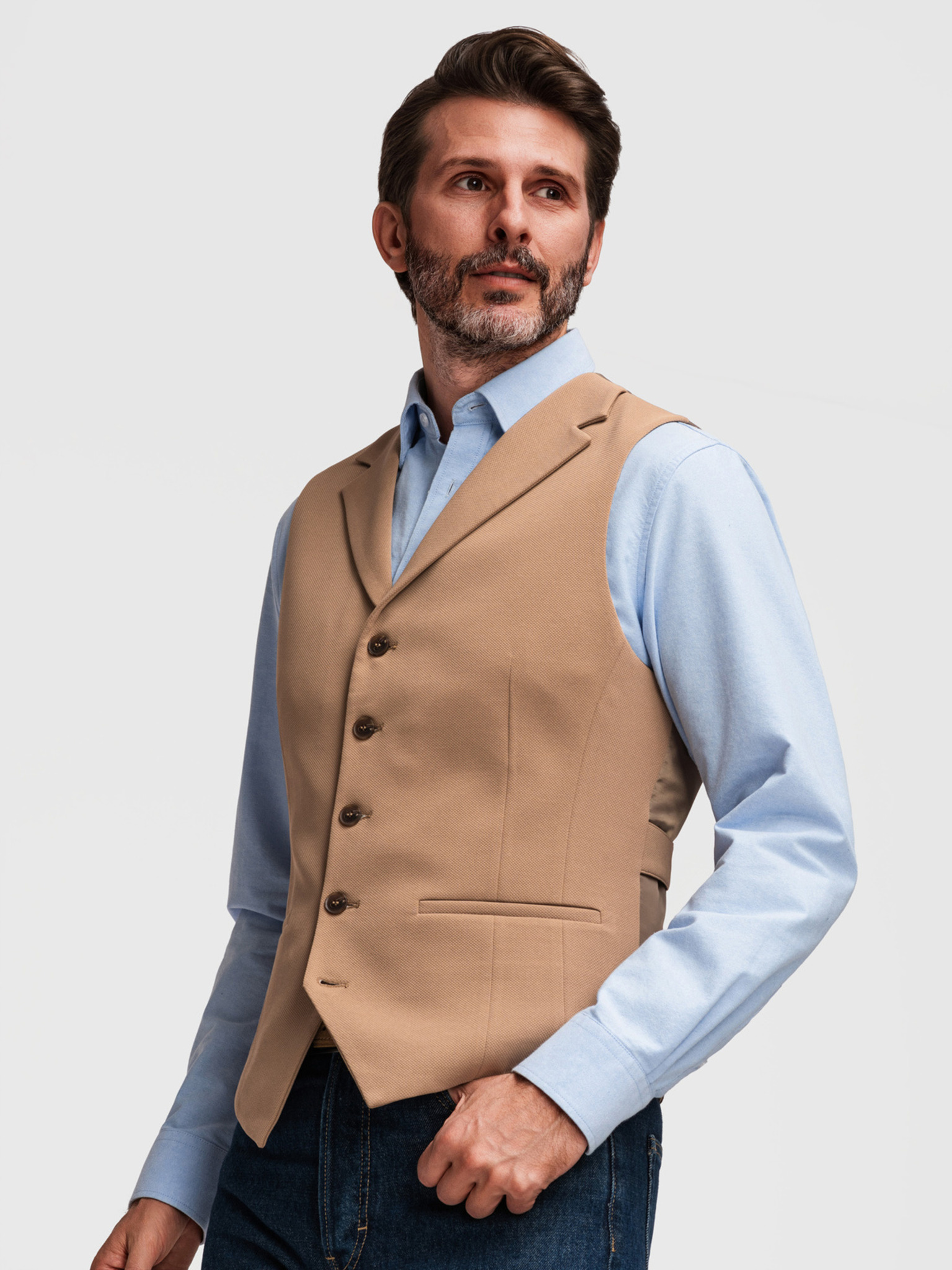 Elegantna moska vesta s lopati - bež V2 V66 Ombre Clothing