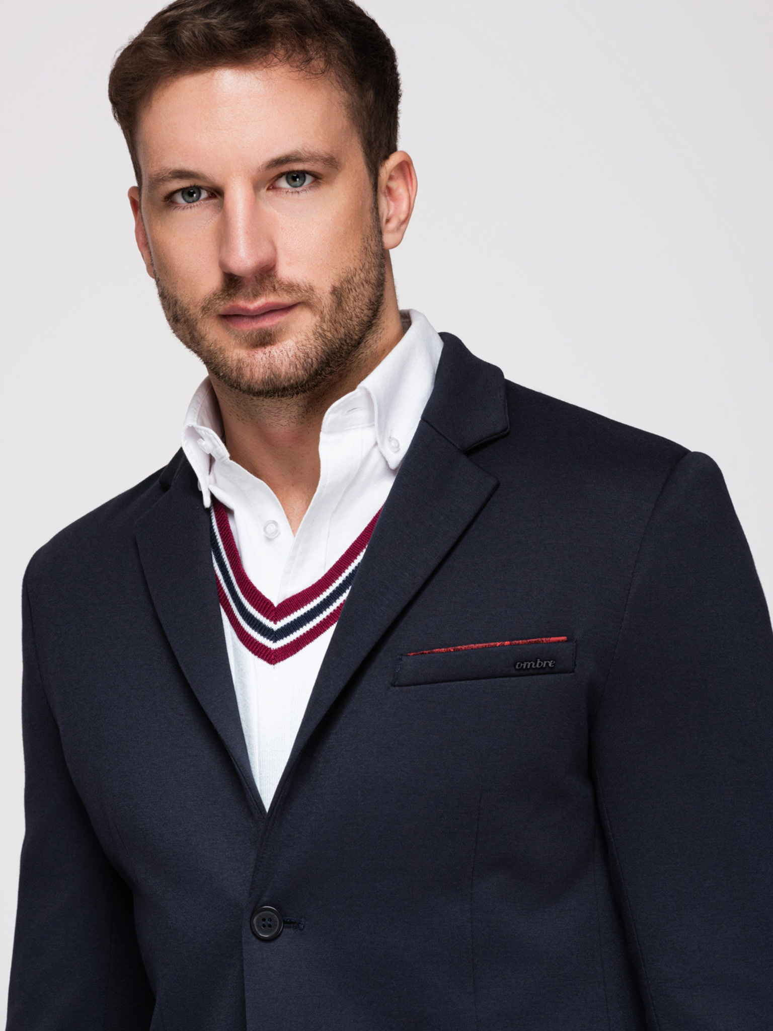 Moški sako REGULAR kroja s platnom - svetlo modra V4 M169 Ombre Clothing