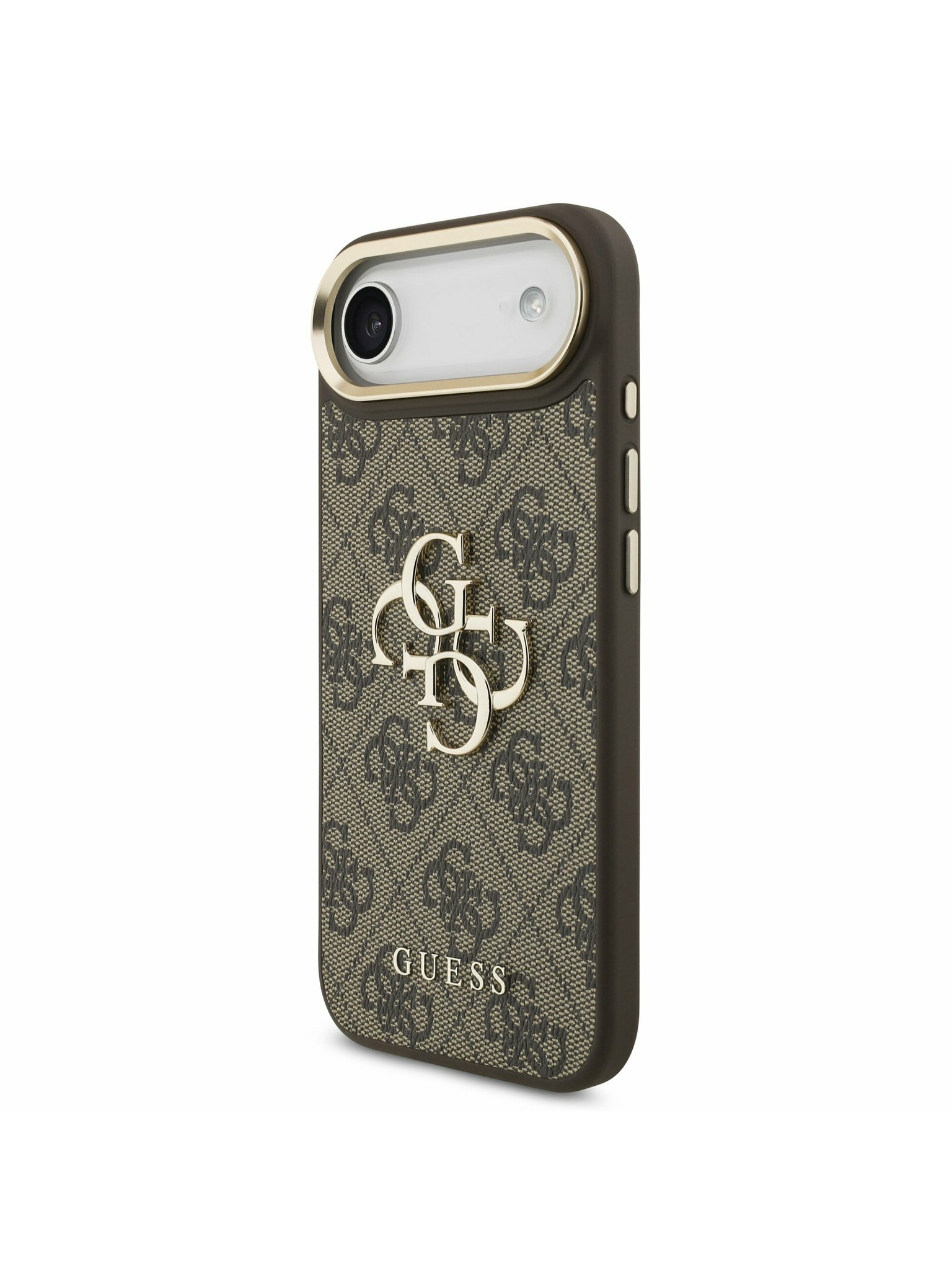 Guess PU Usnjeni 4G Strass Trikotni Logotip Zlati Okvir MagSafe Zadnji Ohišje za iPhone Air Rjava
