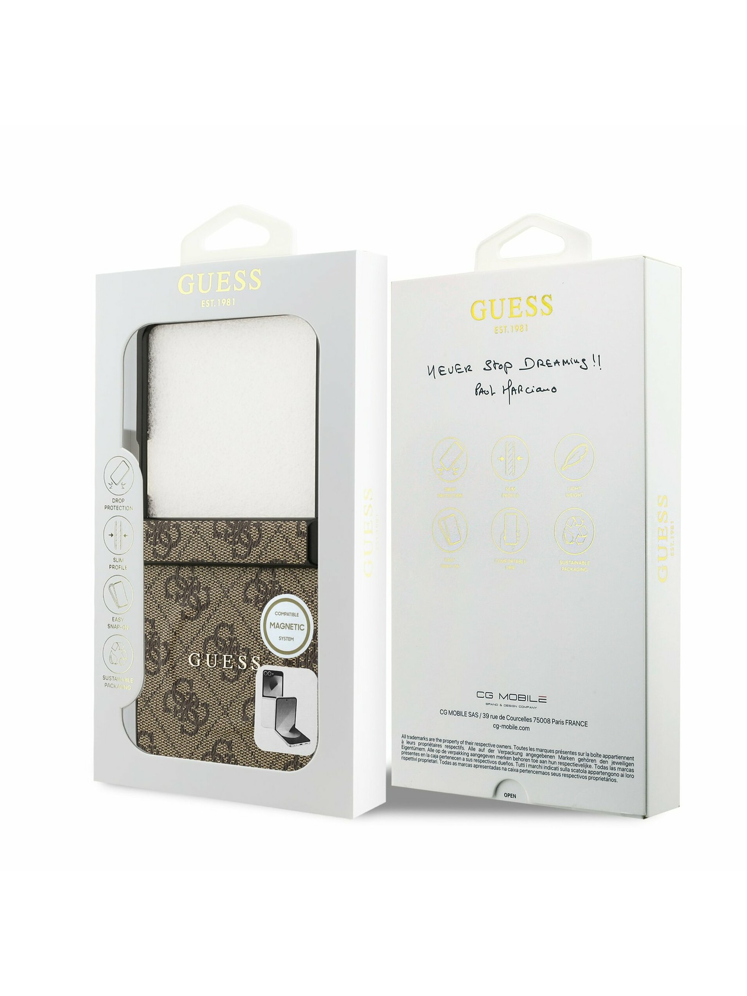 Guess PU Leather 4G Colored Ring Magnetic Zadnji ovoj za Samsung Galaxy Z Fold 7 Brown